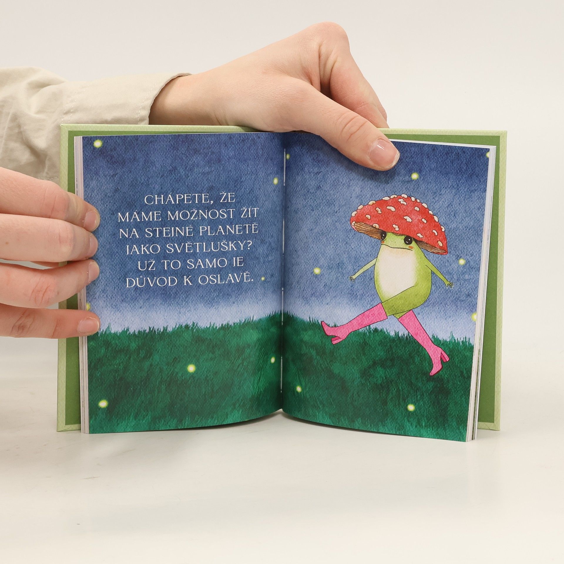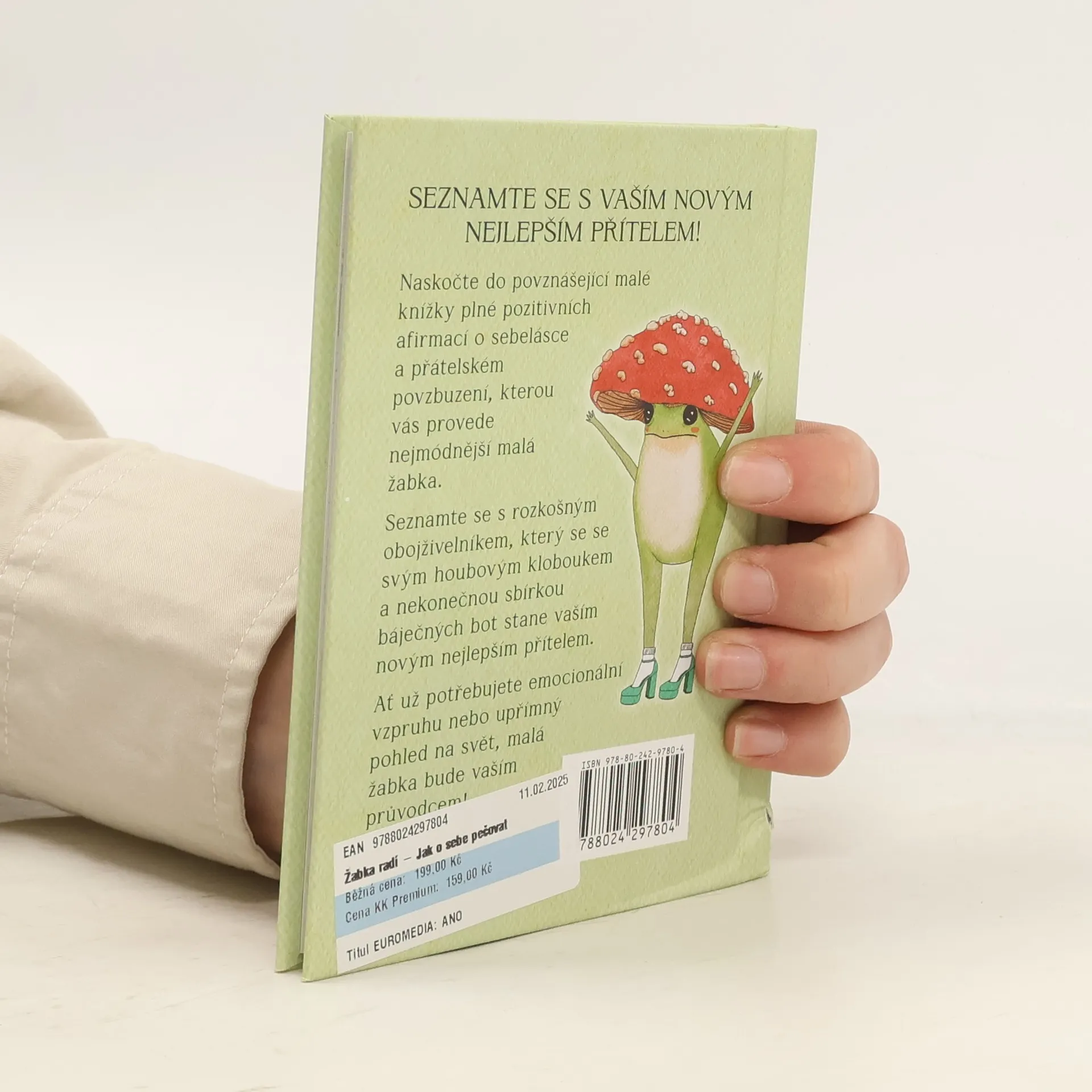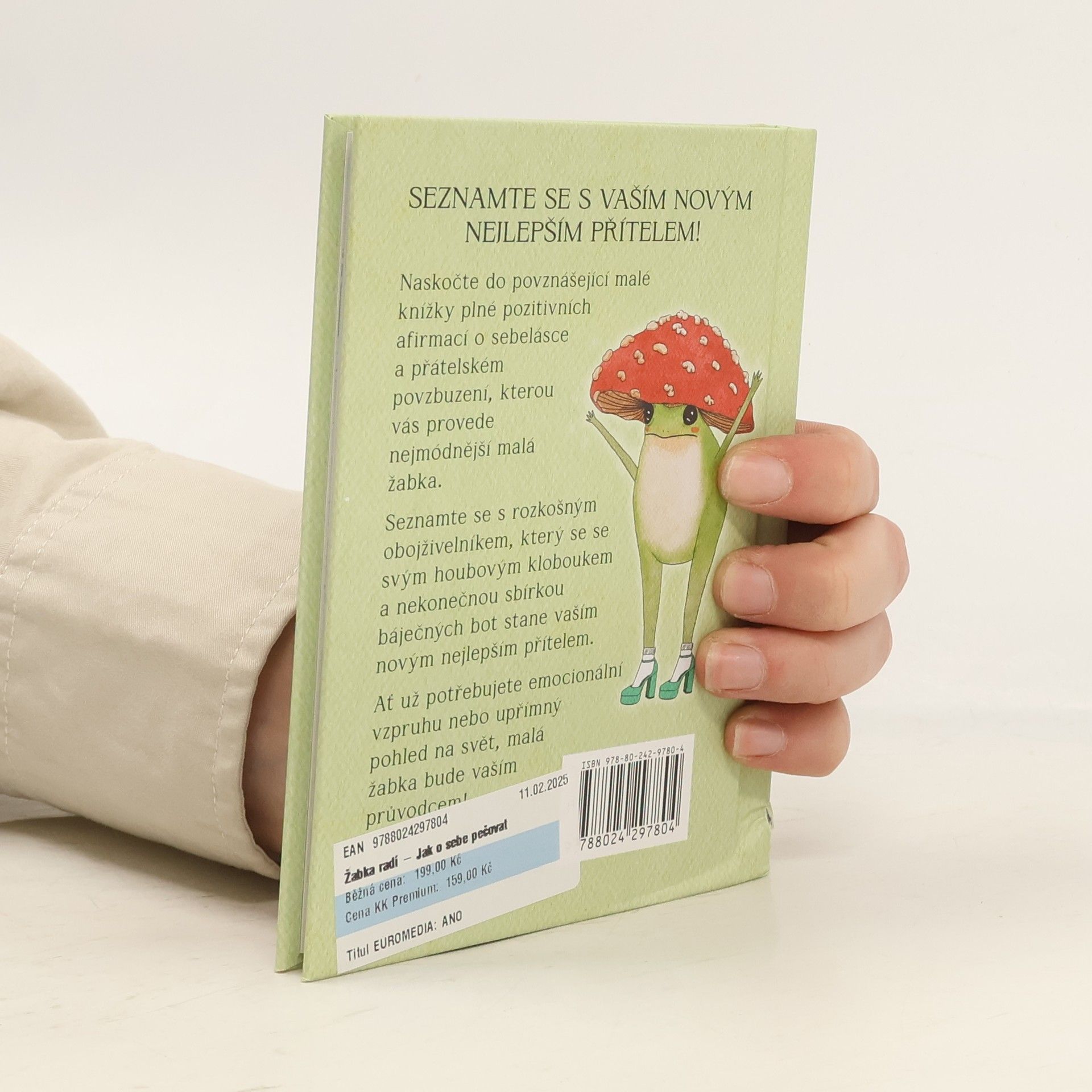 Naskočte do povznášející malé knížky plné pozitivních afirmací o sebelásce a přátelském povzbuzení, kterou vás provede nejmódnější malá žabka se svým heslem: „Nezapomeňte na jemnou magii, která se každý den odehrává všude kolem vás!“ Seznamte se s rozkošným obojživelníkem, který se se svým houbovým kloboukem a nekonečnou sbírkou báječných bot stane vaším novým nejlepším přítelem. Ať už potřebujete emocionální vzpruhu nebo upřímný pohled na svět, malá žabka bude vaším průvodcem!