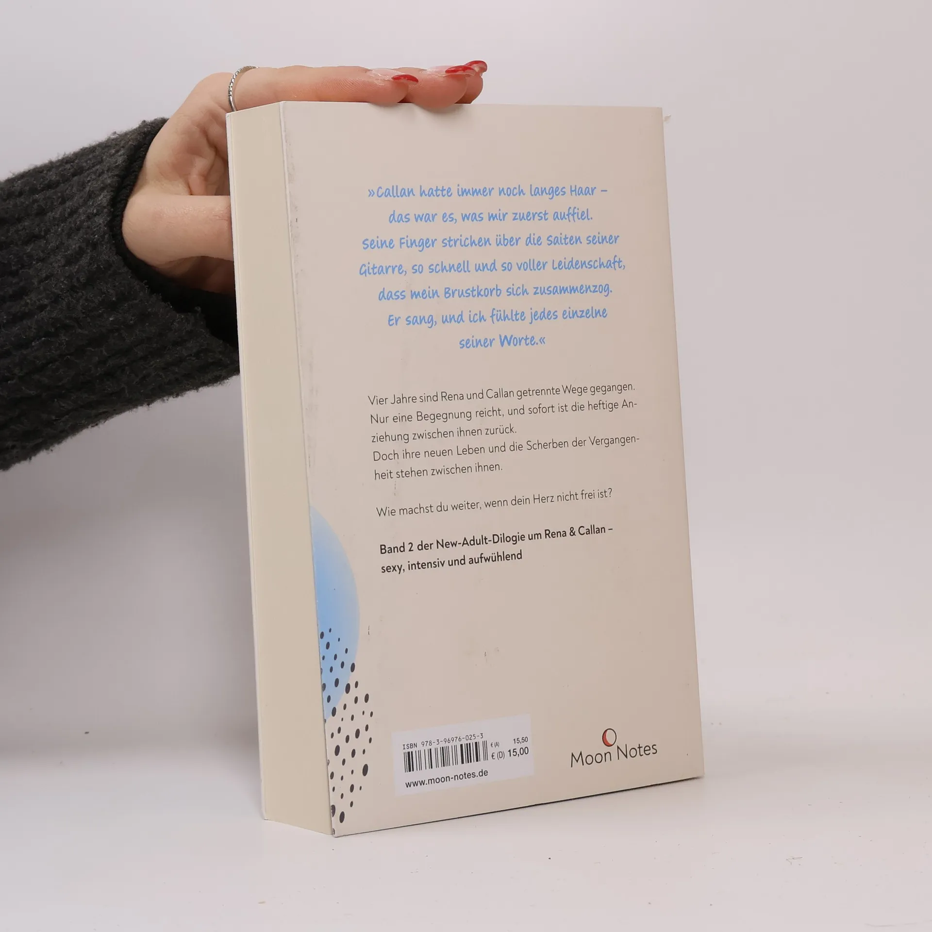 "Nach der Trennung von Cal zieht Rena mit ihrer besten Freundin nach Pittsburgh und verwirklicht dort ihren Traum vom Kunststudium. Callan studiert Musik und kehrt anschließend in seine Pittsburgher Heimat zurück. Er wird Frontmann einer Band, die kleinere Konzerte gibt. So auch auf einer Party, die Renas Bruder Darren schmeißt. Vier Jahre sind sie getrennte Wege gegangen, jetzt hört sie ihn zum ersten Mal singen - und wieder funkt es zwischen Rena und Cal. Sie fühlen sich immer noch heftig zueinander hingezogen ..." (www.buchhandel.de)