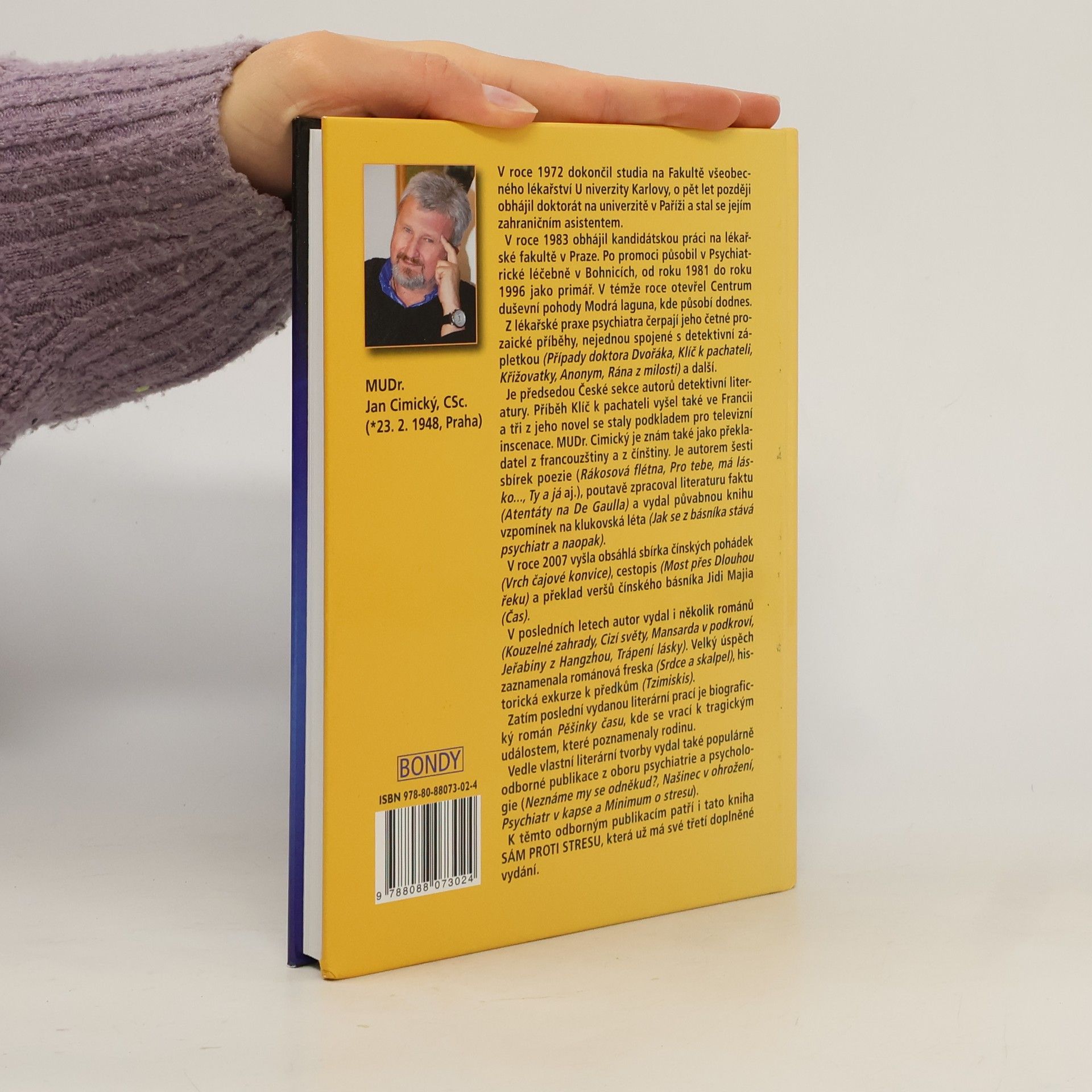 Každý druhý člověk v této zemi trpí důsledky stresu, neurózy nebo dokonce některou z forem depresí. Třetí doplněné vydání jednoho z největších lékařských odborníků MUDr. Jana Cimického, CSc., úspěšně navazuje na druhé vydání, které bylo před sedmi lety celé rozebráno během několika týdnů. Sám proti stresu je kniha plná účinných rad, ale také testů, kde si každý může ověřit, zda je ještě schopen sám se vypořádat s psychickým náporem, který na nás život klade, nebo je už ve stadiu, kdy by měl vyhledat odbornou lékařskou pomoc.