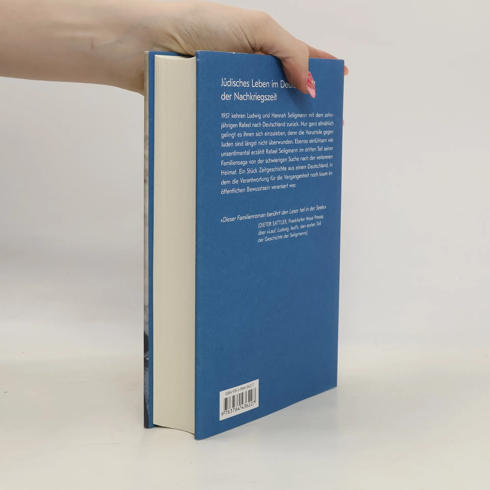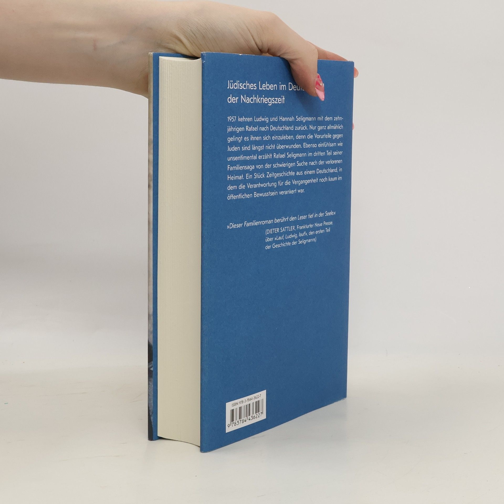 1957 kehren Ludwig und Hannah Seligmann mit dem 10-jährigen Rafael nach Deutschland zurück. Es fällt ihnen schwer, in der alten Heimat Fuß zu fassen. Rafi und sein Vater leiden zunehmend unter Vorurteilen. Die Familie übersiedelt schließlich nach München, wo sie sich allmählich einlebt. Trotz aller Hindernisse macht der verträumte Schulversager Rafael das Abitur, studiert Geschichte und hat – gegen den erbitterten Widerstand der Mutter – eine Beziehung mit Ingrid, einer "Schickse". Ebenso einfühlsam wie unsentimental erzählt Rafael Seligmann im dritten Teil seiner Familiensaga von der schwierigen Suche nach der verlorenen Heimat des Vaters. Sein Roman ist zugleich ein Stück Zeitgeschichte aus einem Deutschland, in dem die Verantwortung für die Vergangenheit noch kaum im öffentlichen Bewusstsein verankert war. „Wie die Geschichte des 20. Jahrhunderts Familiengeschichten bestimmt, das hat der Historiker und Schriftsteller Rafael Seligmann auf einzigartige Weise sichtbar gemacht.“ Deutschlandfunk