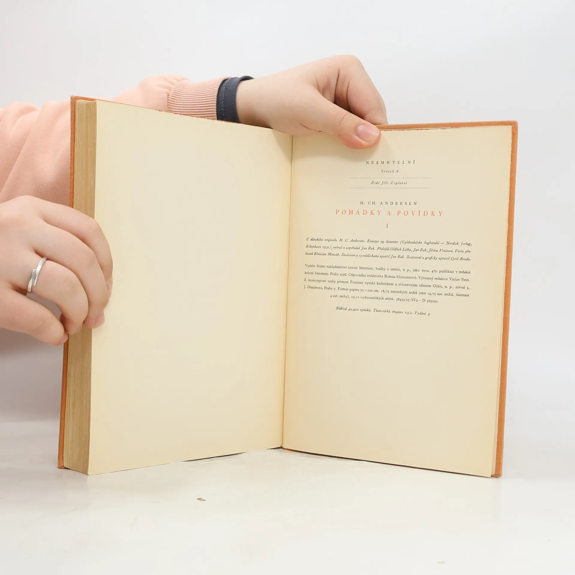 35 pohádek od jednoho z nejlepších světových pohádkářů. Ilustrace Cyril Bouda. Pohádky: Křesadlo, Mikula a Mikulka, Princezna na hrášku, Iduščiny květiny, Nezbedný kluk, Přítel na cestách, Malá mořská víla, Císařovy nové šaty, Přezuvky Štěstěny, Sedmikráska, Statečný cínový vojáček, Divoké labutě, Létající kufr, Bronzový kanec, Rúže s Homérova hrobu, Ole Zavřiočka, Pasáček vepřú, Slavík, Ošklivé kačátko, Smrček, Sněhová královna, Látací jehla, Babička, Závody ve skoku, Pastýřka a kominíček, Holger Dán, Devčátko se sirkami, Obrázek ze zámeckých hradeb, Z vartovského okna, Stará svítilna, Sousedé, Stín, Starý dúm, Šťastná rodina, Je to naprosto jisté.