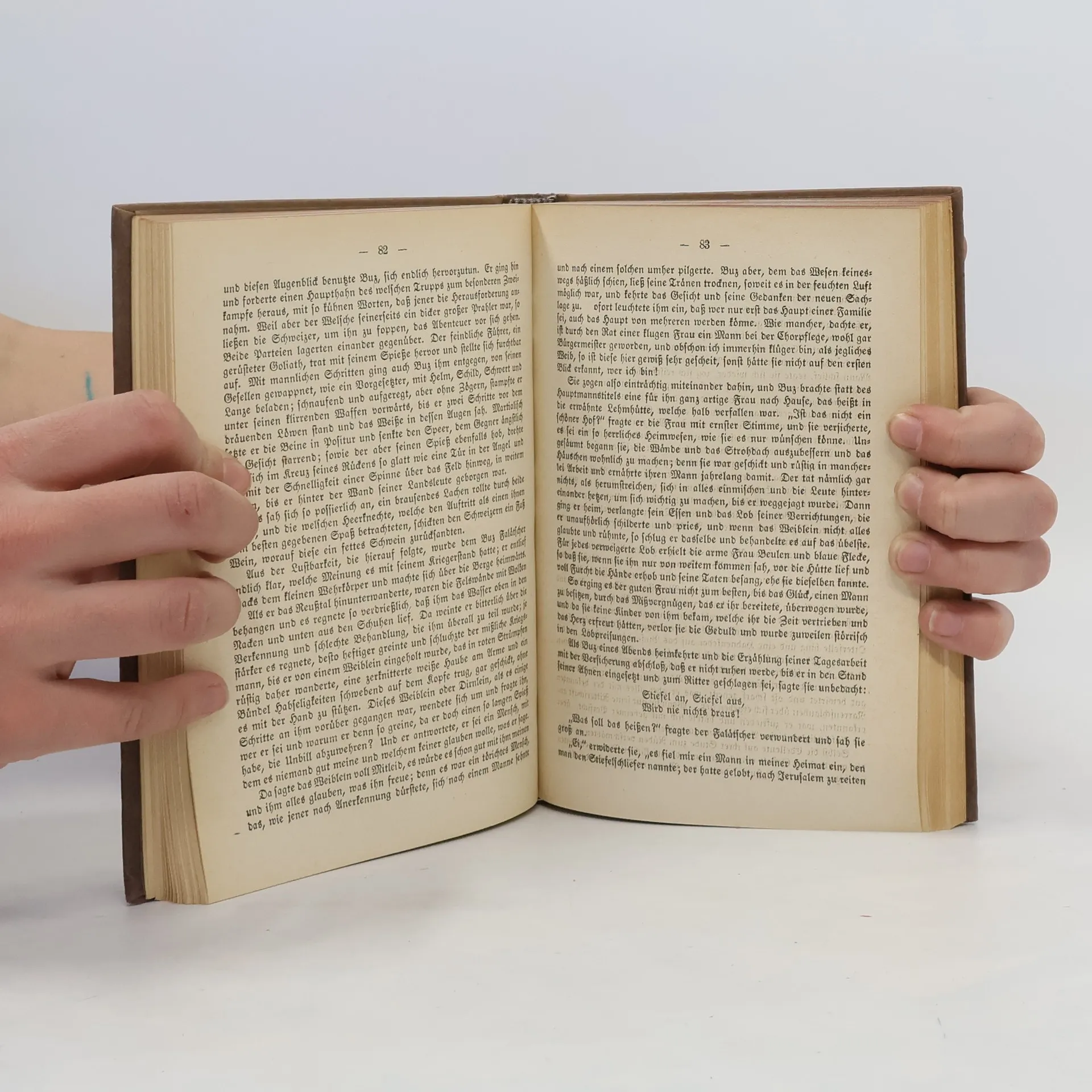 ... An einem solchen Orte traf Salomon Landolt, etwa in seinem funfundzwanzigsten Jahre, mit der jungen Salome zusammen. Sie standen zu dem Hause, von entgegengesetzter Seite her, in nicht naher Verwandtschaft, so da sie unter sich selbst nicht mehr fur verwandt gelten konnten und doch ein liebliches Gefuhl gemeinsamer Beziehung empfanden. Auerdem wurden sie wegen ihrer ahnlich lautenden Namen der Gegenstand heiterer Betrachtungen, und es gab manchen Scherz, der ihnen nicht zuwider war, wenn sie auf einen Ruf gleichzeitig sich umsahen und errotend wahrnahmen, da vom andern die Rede sei. Beide gleich hubsch, gleich munter und lebenslustig, schienen sie wohlgesinnten Freunden fur einander schicklich und eine Vereinigung nicht von vornherein untunlich zu sein. Freilich war Salomon nicht gerade in der Verfassung, schon ein eigenes Haus zu grunden; vielmehr kreuzte sein Lebensschifflein noch unschlussig vor dem Hafen herum, ohne auszufahren noch einzulaufen. ...