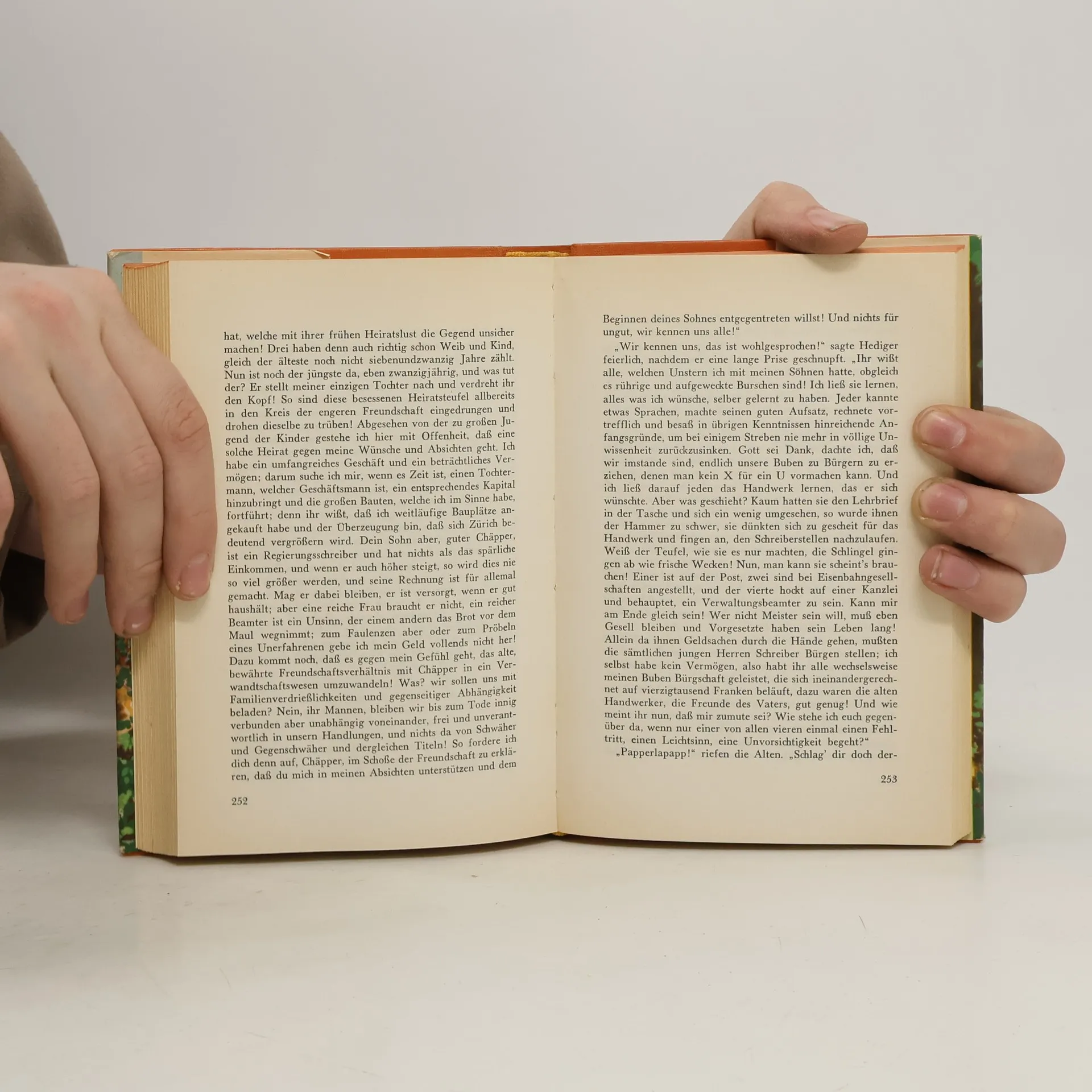 ... An einem solchen Orte traf Salomon Landolt, etwa in seinem funfundzwanzigsten Jahre, mit der jungen Salome zusammen. Sie standen zu dem Hause, von entgegengesetzter Seite her, in nicht naher Verwandtschaft, so da sie unter sich selbst nicht mehr fur verwandt gelten konnten und doch ein liebliches Gefuhl gemeinsamer Beziehung empfanden. Auerdem wurden sie wegen ihrer ahnlich lautenden Namen der Gegenstand heiterer Betrachtungen, und es gab manchen Scherz, der ihnen nicht zuwider war, wenn sie auf einen Ruf gleichzeitig sich umsahen und errotend wahrnahmen, da vom andern die Rede sei. Beide gleich hubsch, gleich munter und lebenslustig, schienen sie wohlgesinnten Freunden fur einander schicklich und eine Vereinigung nicht von vornherein untunlich zu sein. Freilich war Salomon nicht gerade in der Verfassung, schon ein eigenes Haus zu grunden; vielmehr kreuzte sein Lebensschifflein noch unschlussig vor dem Hafen herum, ohne auszufahren noch einzulaufen. ...