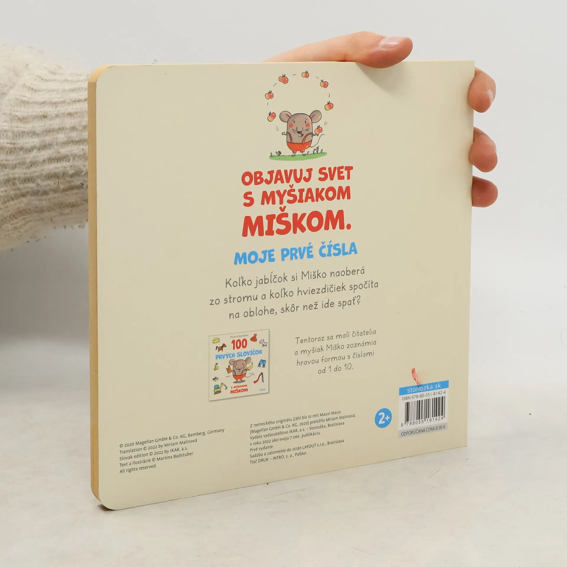 Druhé pokračovanie milého ilustrovaného leporela, vďaka ktorému sa deti naučia počítať do desať! Koľko hrianok schrúme myšiak Miško? A koľko jabĺčok si hneď zrána naoberá zo stromu? Na poobednej prechádzke zas Miško zbadá veľa zajačikov na lúke. Pomôžeš mu ich zrátať? A koľko hviezdičiek sa nachádza na nočnej oblohe, skôr než sa uloží do postieľky? Tentoraz sa malí čitatelia a myšiak Miško zoznámia hravou formou s číslami od 1 do 10. Pre deti od 2 rokov Z nemeckého originálu preložila Miriam Malinová.
