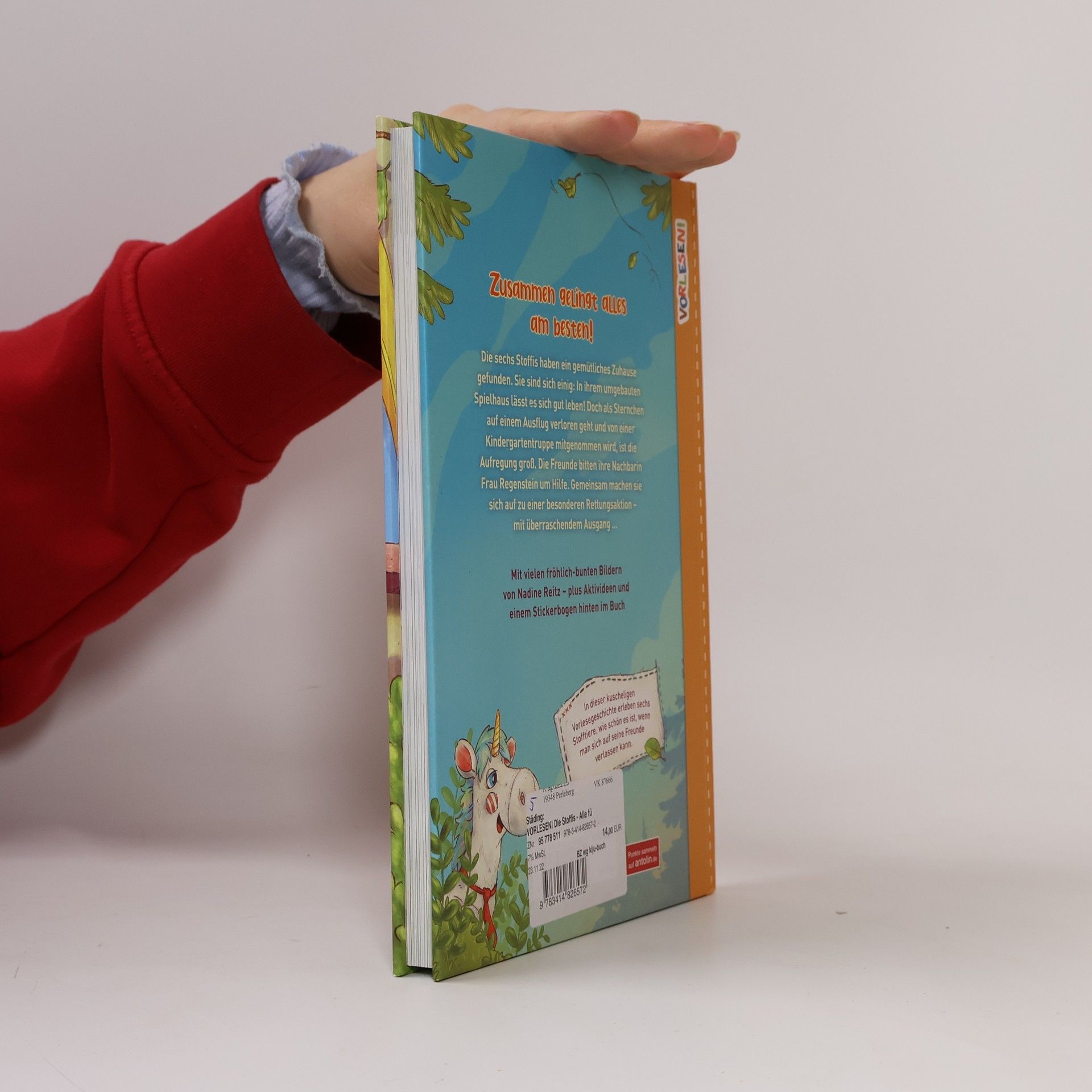 In dieser kuscheligen Vorlesegeschichte erleben sechs Stofftiere, wie schön es ist, wenn man sich auf seine Freunde verlassen kann. Die sechs Stoffis haben ein gemütliches Zuhause gefunden. Sie sind sich einig: In ihrem umgebauten Spielhaus lässt es sich gut leben! Doch als Sternchen auf einem Ausflug verloren geht und von einer Kindergartentruppe mitgenommen wird, ist die Aufregung groß. Die Freunde bitten ihre Nachbarin Frau Regenstein um Hilfe. Gemeinsam machen sie sich auf zu einer besonderen Rettungsaktion - mit überraschendem Ausgang ... Ein rundum besonderes Buch: Viele bunte Bilder von Nadine Reitz, die zum Entdecken einladen und viel Spaß machen Pädagogisch wertvoll: vermittelt wichtige Werte und stärkt das Selbstvertrauen der Kinder, regt die Fantasie an Mit süßen Stickern, die vorne ins Buch geklebt werden können, um den Lesefortschritt sichtbar zu machen Auch für die Schule geeignet: ein Quiz bei Antolin bietet eine Extra-Motivation für Selbstleser:innen Als Geschenk für alle Kinder ab 5 Jahren bestens geeignet