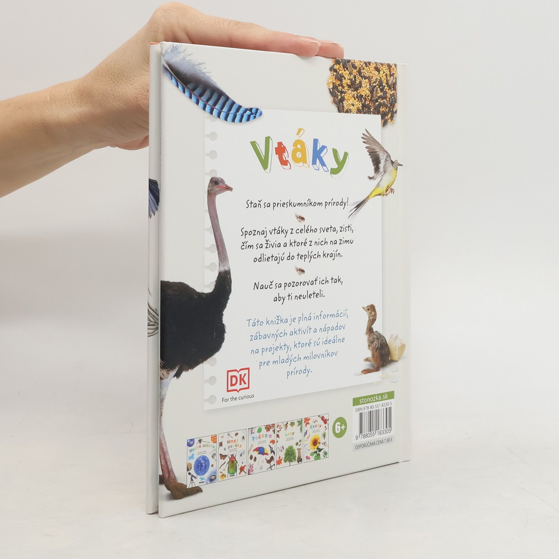 Staň sa prieskumníkom prírody! Spoznaj vtáky z celého sveta, zisti, čím sa živia, a ktoré z nich na zimu odlietajú do teplých krajín. Nauč sa pozorovať ich tak, aby ti neuleteli. Táto knižka je plná informácií, zábavných aktivít a nápadov na projekty, ktoré sú ideálne pre mladých milovníkov prírody. Pre čitateľov od 6 rokov Z anglického originálu Birds (Dorling Kindersley Limited, London 2017) preložili Mariana Hyžná a Matúš Hyžný.