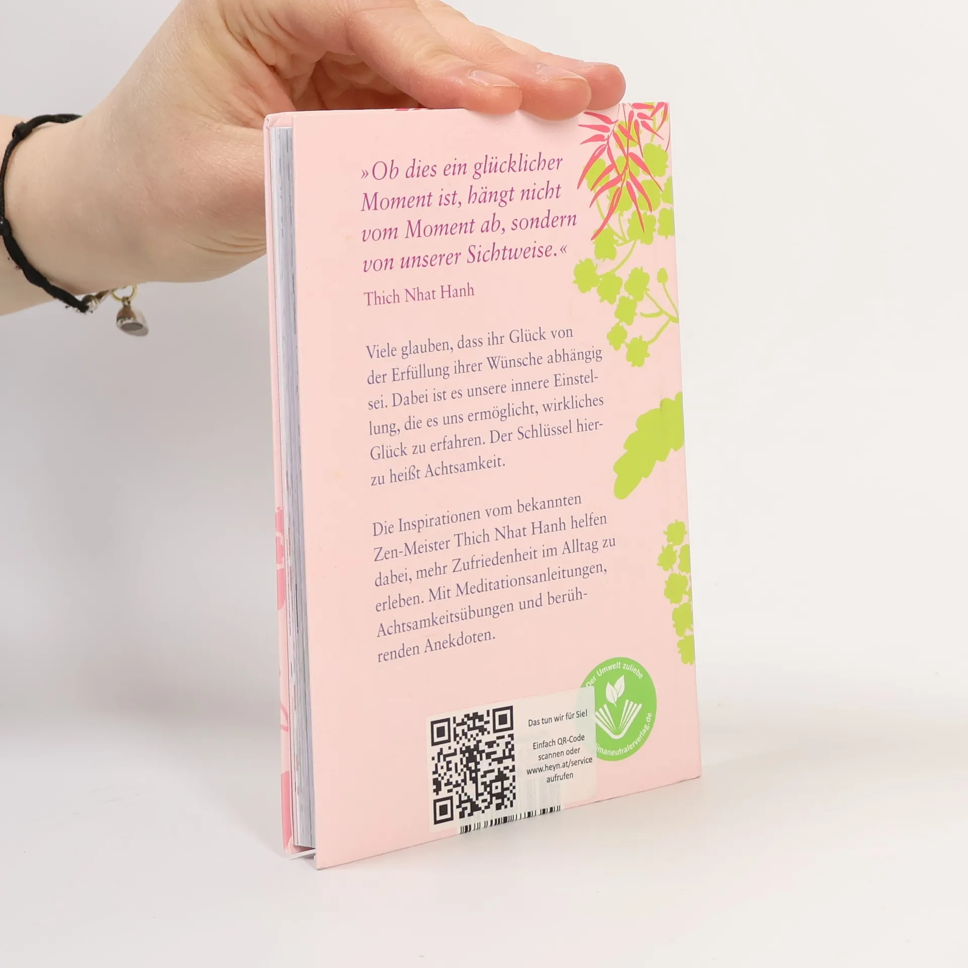 Liebevoll gestaltete Weisheiten von einem der größten Zen-Meister unserer Zeit zum Verschenken "Ob dies ein glücklicher Moment ist, hängt nicht vom Moment ab, sondern von unserer Sichtweise", sagt der bekannte Zen-Meister und Meditationslehrer Thich Nhat Hanh. Oft bilden wir uns ein, wir könnten erst an dem Tag glücklich werden, an dem wir auf der Karriereleiter ganz oben stehen, die Welt bereisen oder der/die Traumpartner/in in unser Leben tritt. Dabei ist es unsere innere Einstellung, die darüber entscheidet, ob wir das Glück erkennen und spüren, nicht die äußeren Bedingungen. In diesem liebevoll illustrierten Geschenkbuch helfen die ausgewählten Inspirationen von Thich Nhat Hanh dabei, unsere Achtsamkeit und Präsenz zu stärken – und damit mehr Zufriedenheit im Alltag zu erleben. Konkrete und leicht anzuwendende Achtsamkeitsübungen, Meditationsanleitungen und berührende Geschichten aus dem Leben des Zen-Meisters machen dieses Buch zu einem besonderen Begleiter für den achtsamen Alltag. Ein ideales Geschenk – vierfarbig mit Illustrationen und Lesebändchen.