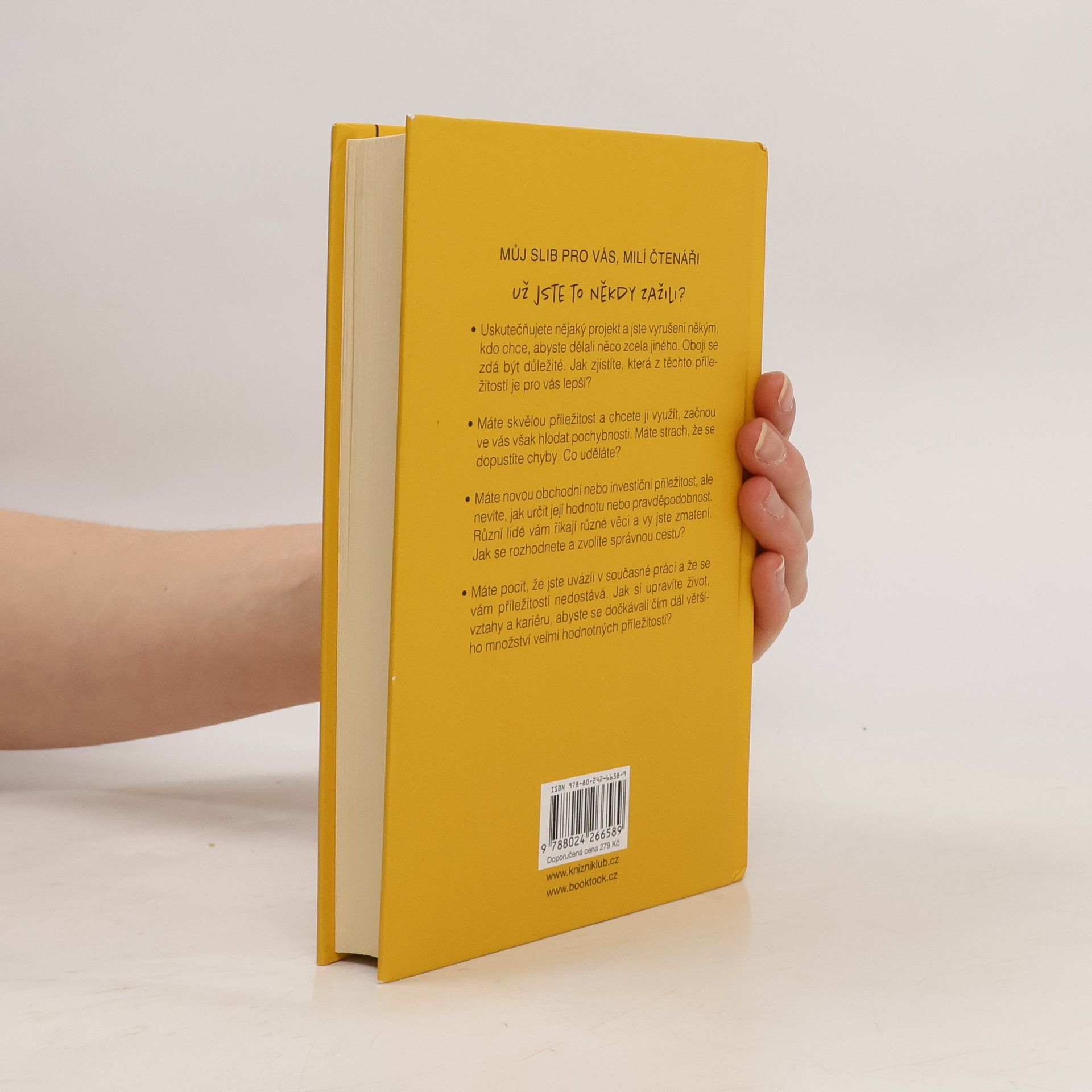 Velmi známý kouč a investor Eben Pagan strávil stovky hodin studováním fenoménu „příležitosti“. Po tom, co vyslechl velký počet milionářů a businessmanů, přišel na to, že úspěšní lidé mají něco společného, je to jejich talent rozpoznat, kde a jak se chopit té správné příležitosti, od níž se poté všechno odvíjí. To se vztahuje jak na pracovní, tak na rodinný či partnerský život. V dnešním internetovém světě je příležitostí až moc, pro obyčejného jedince je těžké se v toku informací a možností orientovat. Kde nemít strach a najít odvahu k činu, a kde naopak raději ustoupit, vás naučí tato kniha.