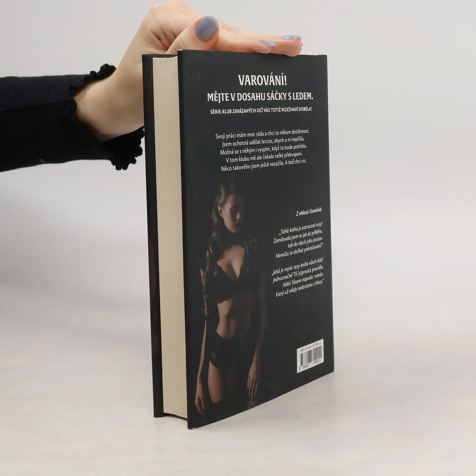 Pro svoji vysněnou práci bych udělala cokoli. A teď musím. Abych si zachránila kůži v kanceláři, musím prodat své tělo v exkluzivním klubu se zavázanýma očima. Zaplatil tisíce dolarů, abych mu na jednu noc patřila, ale když mi sundá pásku z očí, chci víc. Víc nocí, víc pravidel a mnohem víc tohoto nedosažitelného a nekompromisního muže. Pravidlo číslo jedna, žádné otázky. Pravidlo číslo dvě, žádné lži. Ale pravidlo číslo tři? To je vůbec to nejtěžší. Příběh plný žhavých scén, rostoucí velké lásky i vtipného nadhledu na vztahy mezi ženami a muži, taková je první kniha se série Blindfold club.