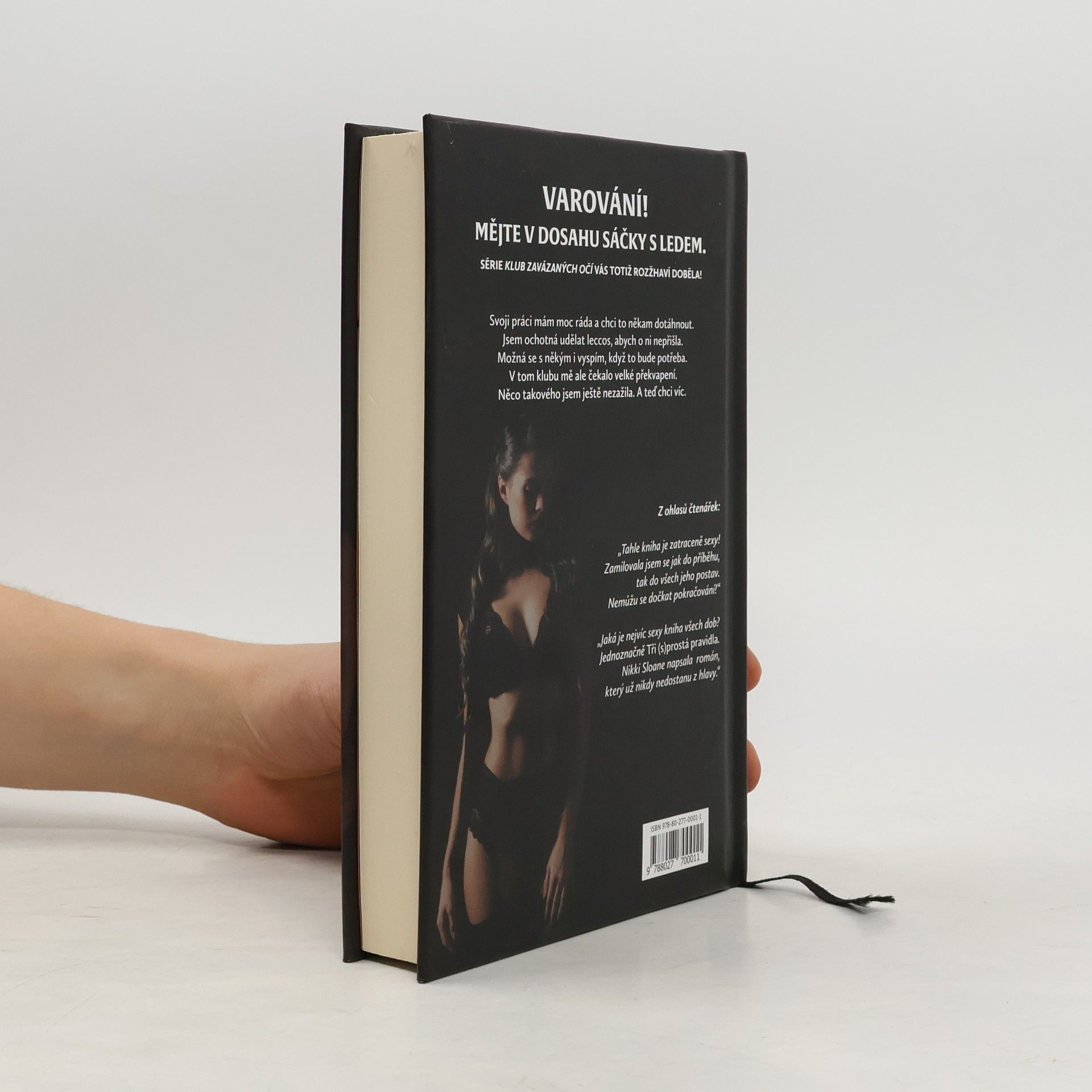 Pro svoji vysněnou práci bych udělala cokoli. A teď musím. Abych si zachránila kůži v kanceláři, musím prodat své tělo v exkluzivním klubu se zavázanýma očima. Zaplatil tisíce dolarů, abych mu na jednu noc patřila, ale když mi sundá pásku z očí, chci víc. Víc nocí, víc pravidel a mnohem víc tohoto nedosažitelného a nekompromisního muže. Pravidlo číslo jedna, žádné otázky. Pravidlo číslo dvě, žádné lži. Ale pravidlo číslo tři? To je vůbec to nejtěžší. Příběh plný žhavých scén, rostoucí velké lásky i vtipného nadhledu na vztahy mezi ženami a muži, taková je první kniha se série Blindfold club.