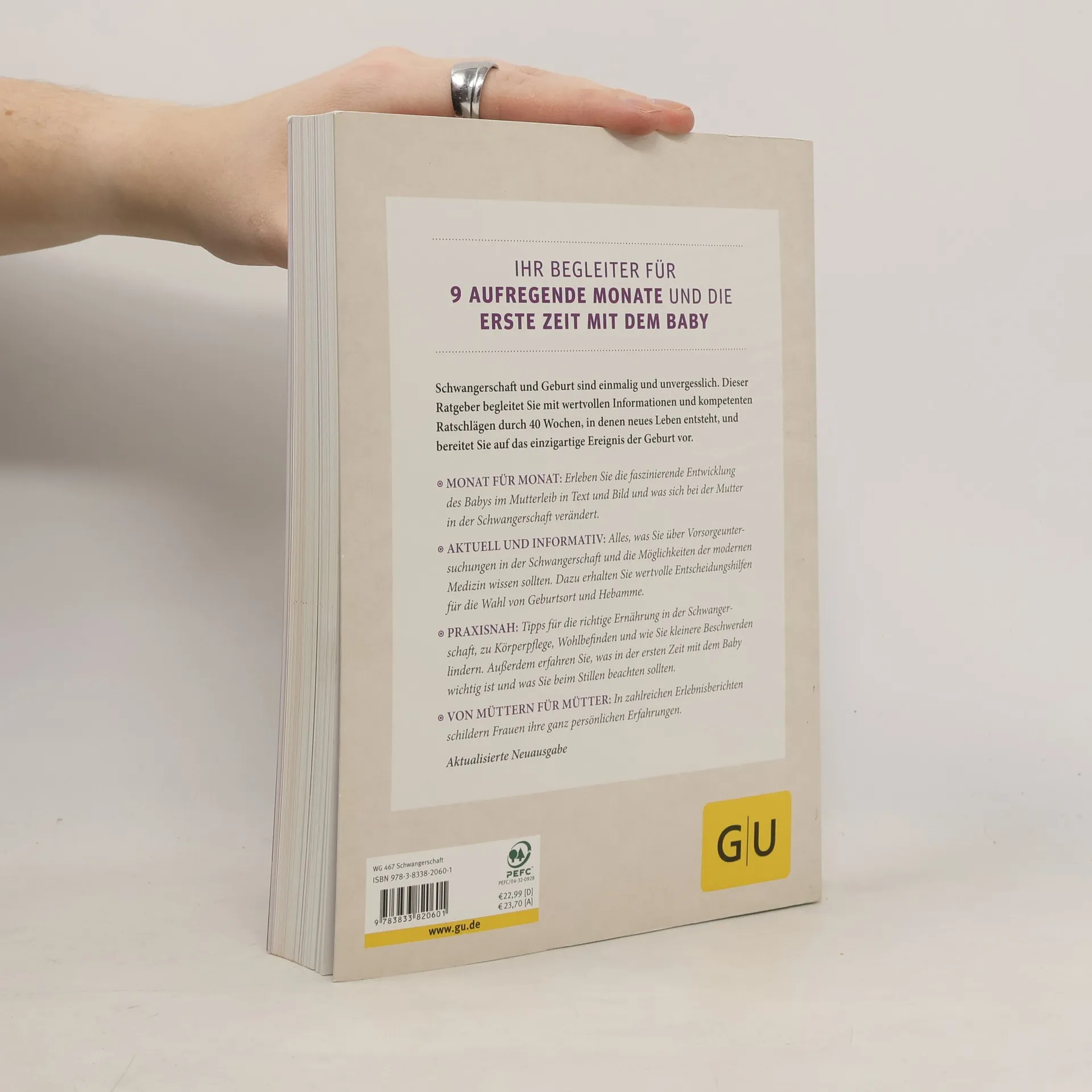 In der Schwangerschaft gibt es viele Fragen rund um 9 spannende Monate, die Geburt und die ersten Tage mit dem Baby. Dieses umfassendes und einfühlsame Nachschlagewerk informiert Monat für Monat über die Besonderheiten der jeweiligen Schwangerschaftsphase und beschreibt die Veränderungen im Körper der Mutter. Es begleitet mit vielen Bildern der neuesten bildgebenden Verfahren Monat für Monate die faszinierende Entwicklung des Babys im Mutterleib. Wie ernährt man sich in der Schwangerschaft gesund, was hilft gegen Übelkeit, was ist eine Fruchtwasseruntersuchung? Dieser Ratgeber gibt Antworten und bietet wichtige, alltagspraktische Tipps, die jede werdende Mutter für eine gesunde Schwangerschaft benötigt. Auch Geburt, Wochenbett und die ersten Wochen mit dem Baby werden beschrieben. Entspannende Yogaübungen für Schwangerschaft und Geburtsvorbereitung, Erlebnisberichte von besonderen Müttern und Vätern sowie Sonderseiten mit den wichtigsten Fragen und Antworten runden jedes Thema ab.