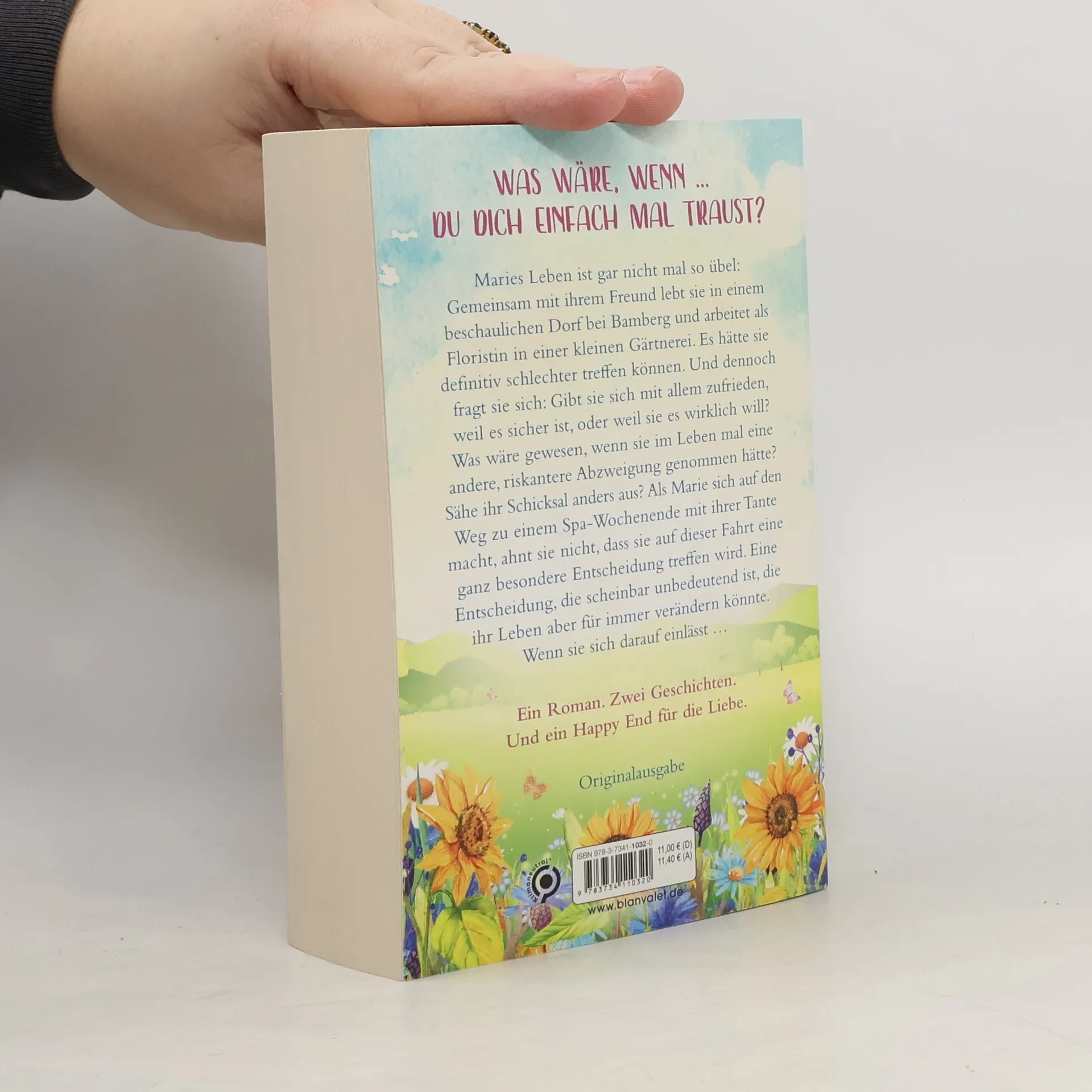 Was wäre, wenn … du dich einfach mal traust?Maries Leben ist gar nicht mal so übel: Gemeinsam mit ihrem Freund lebt sie in einem beschaulichen Dorf bei Bamberg und arbeitet als Floristin in einer kleinen Gärtnerei. Es hätte sie definitiv schlechter treffen können. Und dennoch fragt sie sich: Gibt sie sich mit allem zufrieden, weil es sicher ist, oder weil sie es wirklich will? Was wäre gewesen, wenn sie im Leben mal eine andere, riskantere Abzweigung genommen hätte? Sähe ihr Schicksal anders aus?Als Marie sich auf den Weg zu einem Spa-Wochenende mit ihrer Tante macht, ahnt sie nicht, dass sie auf dieser Fahrt eine ganz besondere Entscheidung treffen wird.Eine Entscheidung, die scheinbar unbedeutend ist, die ihr Leben aber für immer verändern könnte. Wenn sie sich darauf einlässt …Ein Roman. Zwei Geschichten. Und ein Happy End für die Liebe.Lesen Sie auch »Einmal Liebe zum Mitnehmen«, den ersten romantischen Roman von Frieda Bergmann!