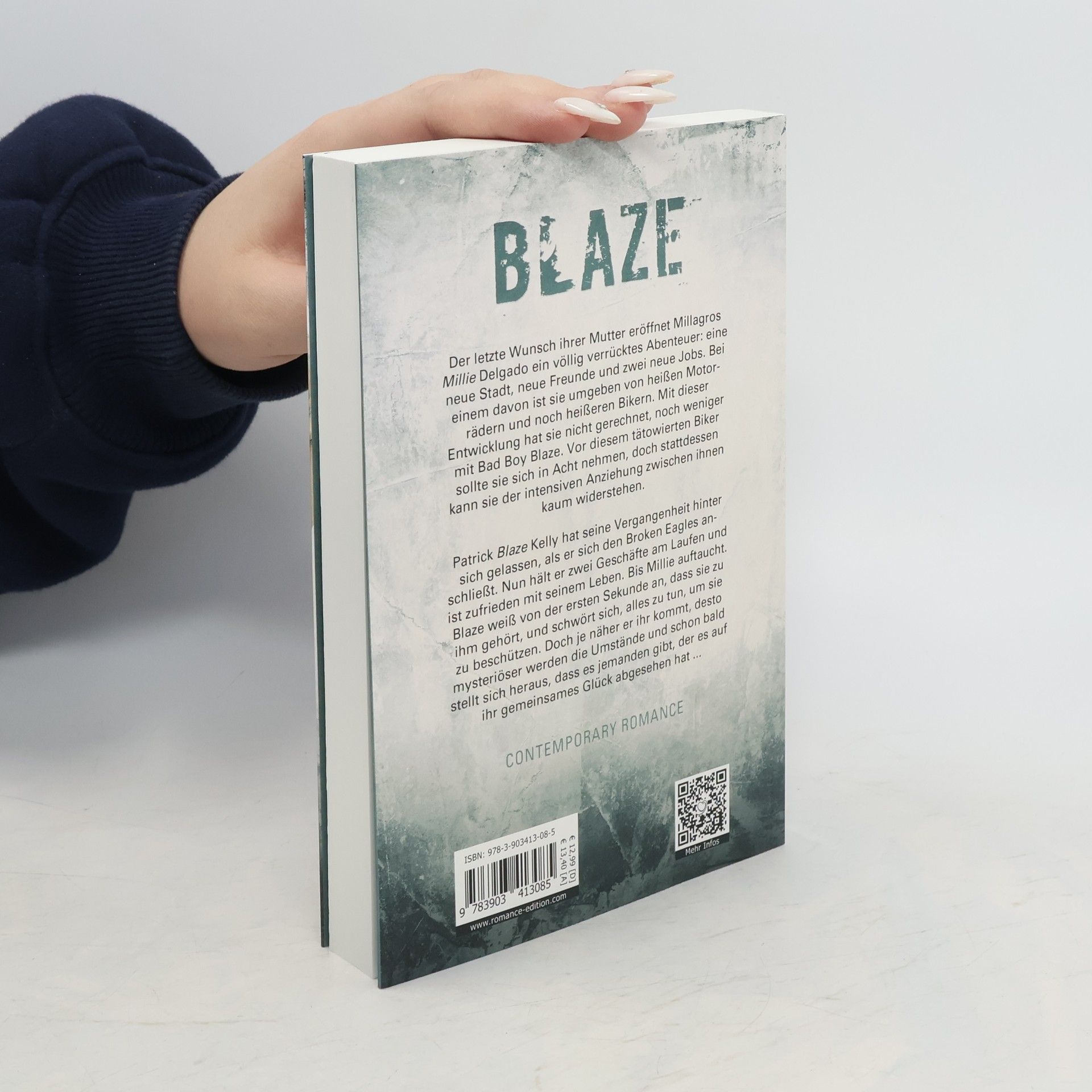 Der letzte Wunsch ihrer Mutter eröffnet Millagros Millie Delgado ein völlig verrücktes Abenteuer: eine neue Stadt, neue Freunde und zwei neue Jobs. Bei einem davon ist sie umgeben von heißen Motorrädern und noch heißeren Bikern. Mit dieser Entwicklung hat sie nicht gerechnet, noch weniger mit Bad Boy Blaze. Vor diesem tätowierten Biker sollte sie sich in Acht nehmen, doch stattdessen kann sie der intensiven Anziehung zwischen ihnen kaum widerstehen. Patrick Blaze Kelly hat seine Vergangenheit hinter sich gelassen, als er sich den Broken Eagles anschließt. Nun hält er zwei Geschäfte am Laufen und ist zufrieden mit seinem Leben. Bis Millie auftaucht. Blaze weiß von der ersten Sekunde an, dass sie zu ihm gehört, und schwört sich, alles zu tun, um sie zu beschützen. Doch je näher er ihr kommt, desto mysteriöser werden die Umstände und schon bald stellt sich heraus, dass es jemanden gibt, der es auf ihr gemeinsames Glück abgesehen hat ...