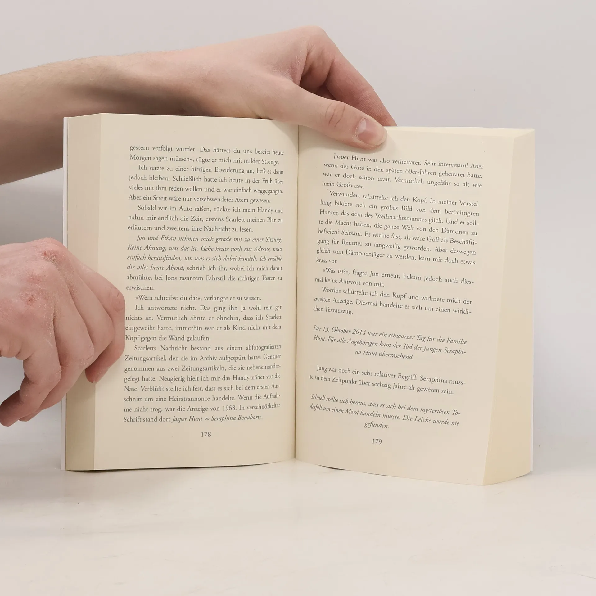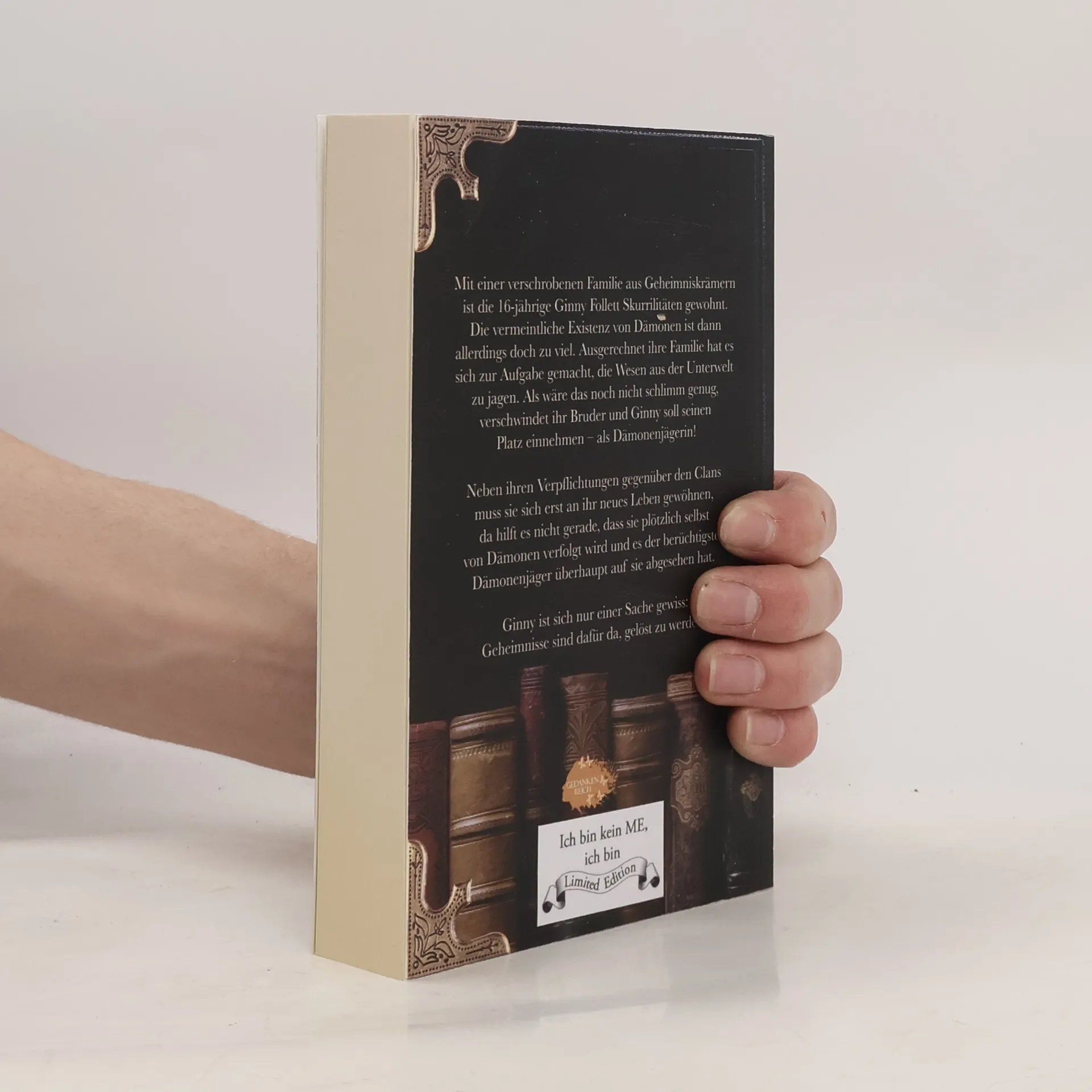Ein Blick hinter einen Schleier aus Geheimnissen, der Herz und Verstand auf die Probe stellt. Mit einer verschrobenen Familie aus Geheimniskrämern ist die 16-jährige Ginny Follett Skurrilitäten gewohnt. Die vermeintliche Existenz von Dämonen ist dann allerdings doch zu viel. Ausgerechnet ihre Familie hat es sich zur Aufgabe gemacht, die Wesen aus der Unterwelt zu jagen. Als wäre das noch nicht schlimm genug, verschwindet ihr Bruder und Ginny soll seinen Platz einnehmen – als Dämonenjägerin! Neben ihren Verpflichtungen gegenüber den Clans muss sie sich erst an ihr neues Leben gewöhnen, da hilft es nicht gerade, dass sie plötzlich selbst von Dämonen verfolgt wird und es der berüchtigtste Dämonenjäger überhaupt auf sie abgesehen hat. Ginny ist sich nur einer Sache gewiss: Geheimnisse sind dafür da, gelöst zu werden. Neuauflage von “Hunter – ich jage dich” – komplett überarbeitet und neu gestaltet.