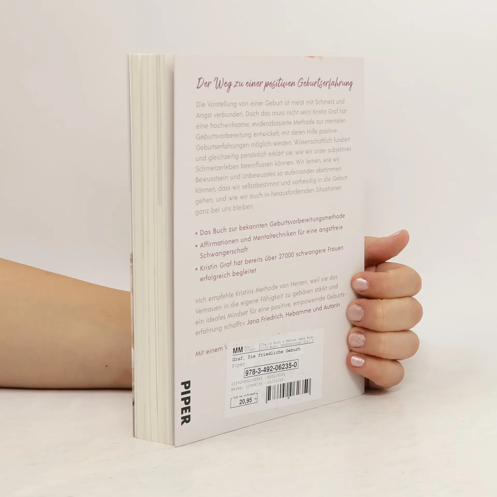Der Weg zu einer positiven GeburtserfahrungDie Vorstellung von einer Geburt ist meist mit Schmerz und Angst verbunden. Doch das muss nicht sein! Kristin Graf hat eine hochwirksame, evidenzbasierte Methode zur mentalen Geburtsvorbereitung entwickelt, mit deren Hilfe positive Geburtserfahrungen möglich werden. Wissenschaftlich fundiert und gleichzeitig persönlich erklärt sie, wie wir unser subjektives Schmerzerleben beeinflussen können. Wir lernen, wie wir Bewusstsein und Unbewusstes so aufeinander abstimmen können, dass wir selbstbestimmt und vorfreudig in die Geburt gehen und wie wir auch in herausfordernden Situationen ganz bei uns bleiben.Das Buch zur bekannten GeburtsvorbereitungsmethodeAffirmationen und Mentaltechniken für eine angstfreie SchwangerschaftKristin Graf hat bereits über 14 000 schwangere Frauen erfolgreich begleitetMit einem Vorwort von Nora Imlau.