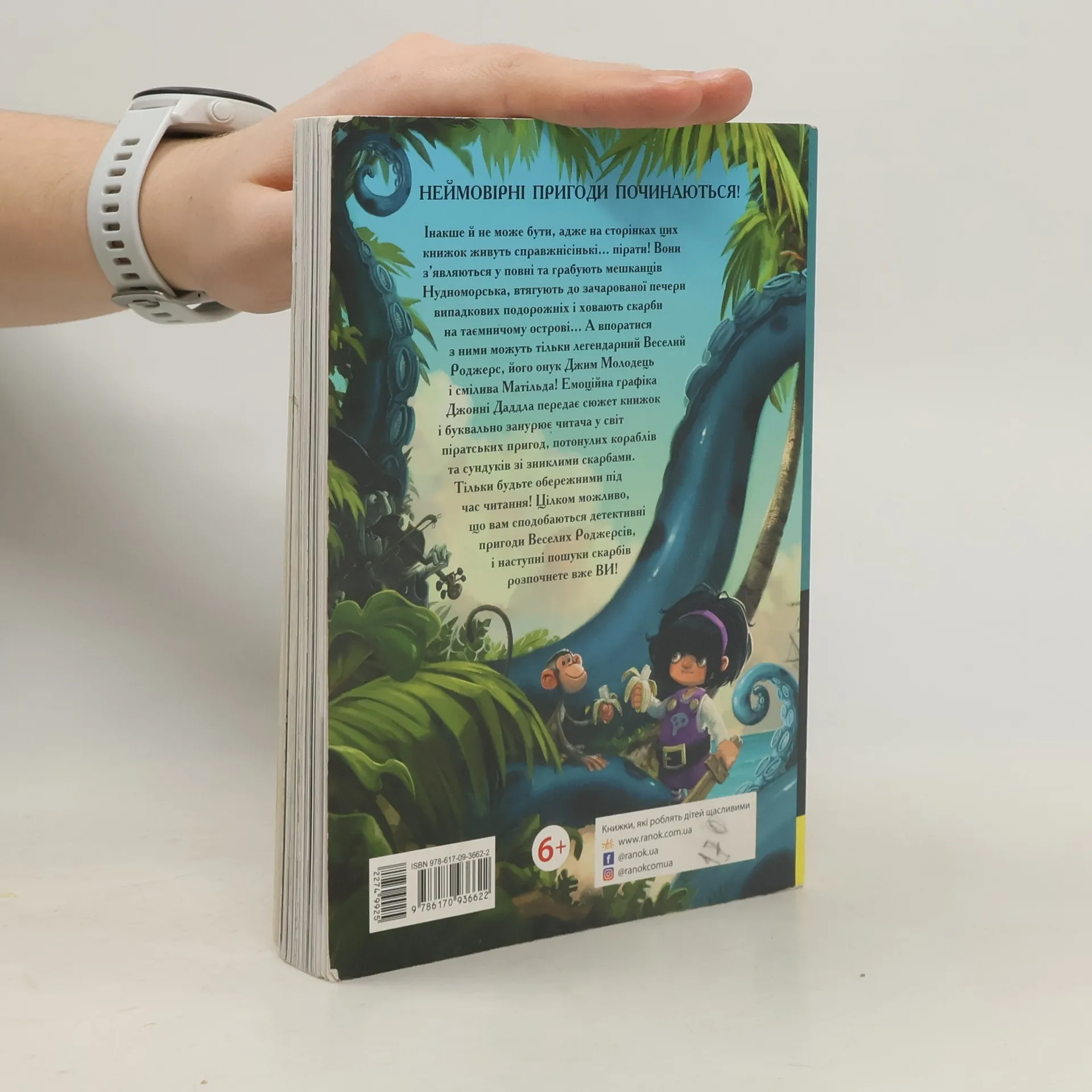 Rozpoczynają się niewiarygodne przygody! Nie może być inaczej, bo przecież na stronach tej książki żyją najprawdziwsi... piraci! Tym razem Matylda znajduje mapę skarbów, pokazuje ją Jolley-Rogersom i wspólnie wyruszają na poszukiwanie tajemniczej wyspy... Wyprawę kończą w... brzuchu potwora! Czy uda im się w porę uwolnić?