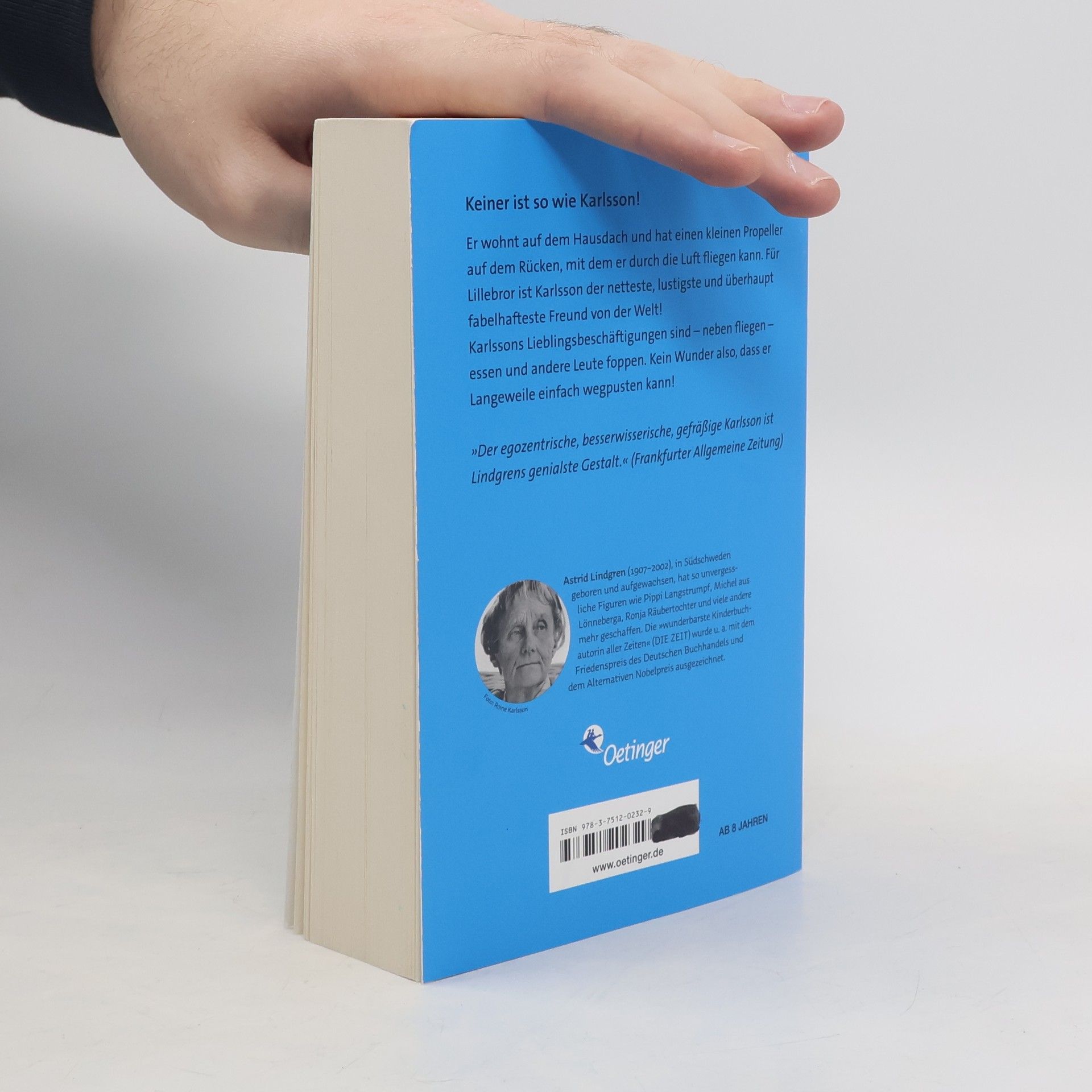 "Knallen muss es tüchtig, und lustig will ich's haben, sonst mach ich nicht mit!“ Karlsson ist jemand ganz Besonderes und begeistert junge Leser schon seit Jahrzehnten! Kein Wunder, denn wer möchte nicht auf dem Dach wohnen, einen Propeller auf dem Rücken haben und unentwegt Späße machen? Sein bester Freund Lillebror jedenfalls ist total begeistert von Karlsson. Wie gut, dass es Astrid Lindgrens Roman nun wieder als Taschenbuch gibt! (www.buchhandel.de)