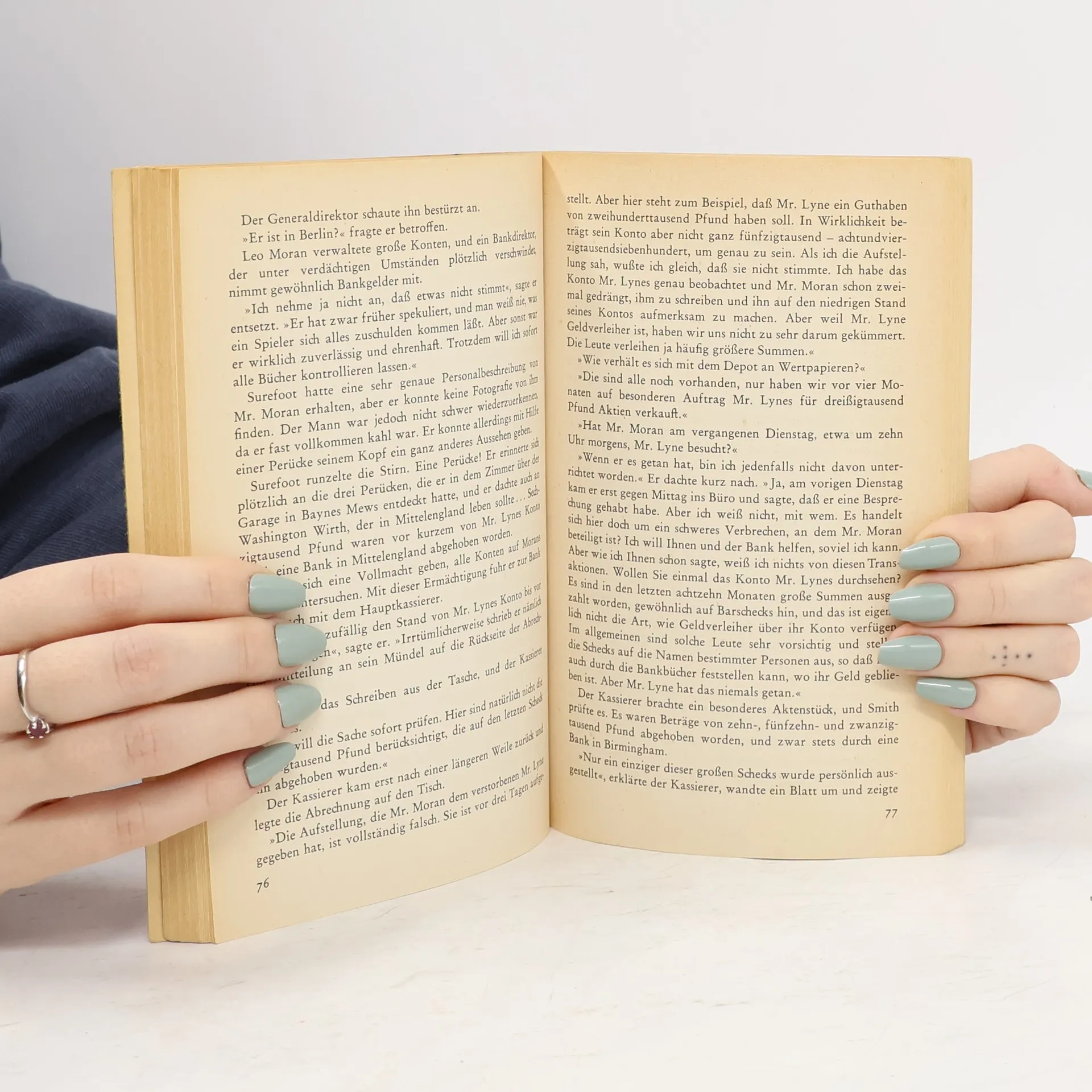 "Mr. Washington Wirth wählte zu seinen exklusiven Gesellschaften die Gäste sorgfältig aus. Trotzdem hatte Mary Lane die Einladung nur angenommen, weil Mike Hennessey sie darum gebeten hatte. Sie mochte diesen etwas untersetzten, melancholischen Mann gern. Die Leute nannten ihn immer nur den "armen, alten Mike", weil er schon öfter Bankrott gemacht hatte. Im Augenblick brauchte man jedoch kein Mitleid mit ihm zu haben, denn er war mit Mr. Washington Wirth befreundet, der sich allen Theaterleuten gegenüber sehr freigebig und hilfsbereit zeigte. Mr. Washington Wirth war ein reicher, etwas geheimnisvoller Mann. Man nahm an, daß er in Mittelengland wohnte und aus der Industrie stammte." Gröls-Klassiker (Edition Werke der Weltliteratur)