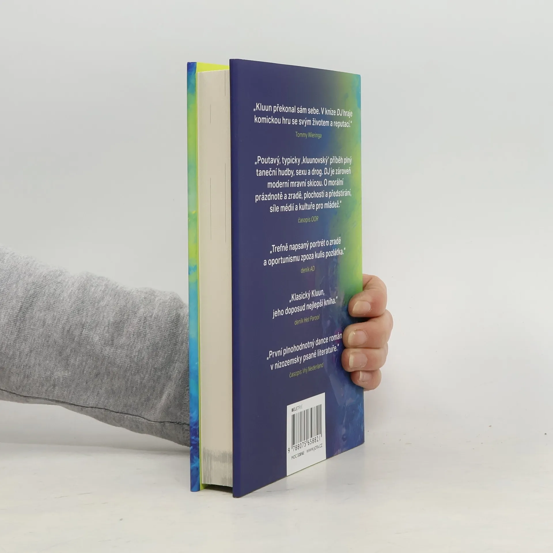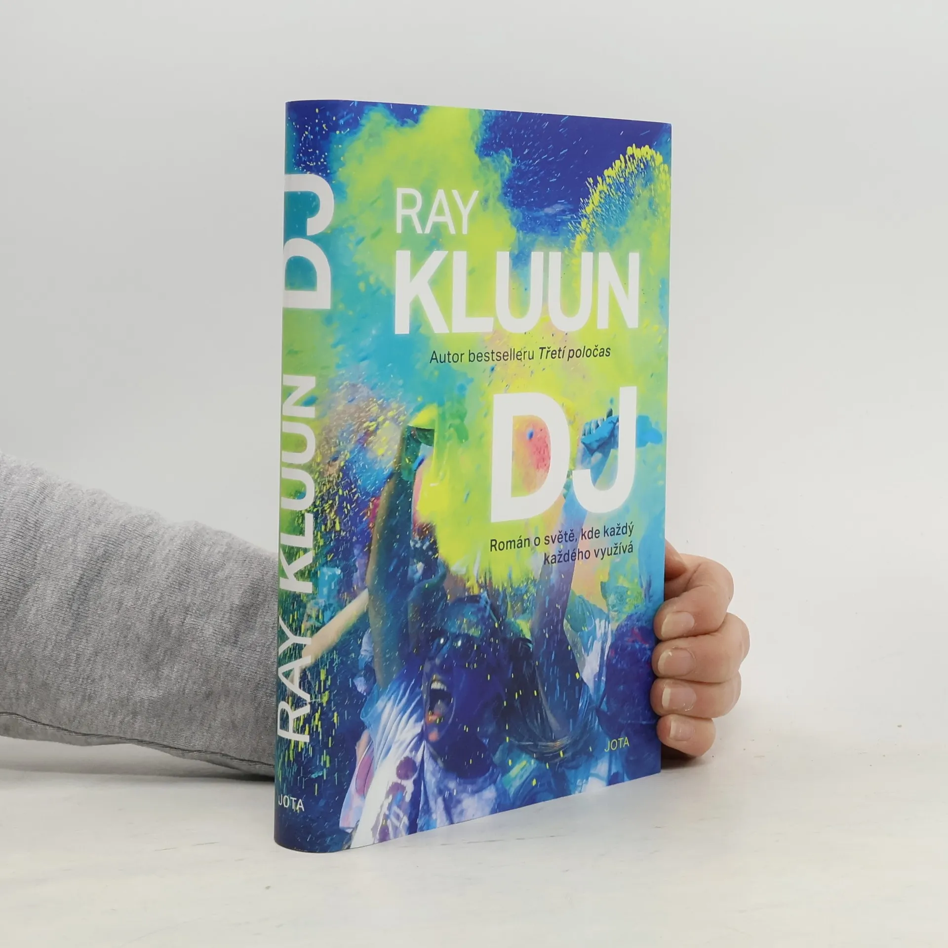 Zběsilá jízda světem taneční hudby v Las Vegas od autora bestselleru Třetí poločas. „Ne, táta nejede na dovolenou,“ těmito slovy se Kluun, čerstvě rozvedený otec, loučí se svými dětmi. Hladový po novém dobrodružství se televizním producentem nechá zlákat k natočení reportáže pro revoluční televizní show a při té příležitosti k návštěvě svého kamaráda z mládí Thorwalda van Gestela. Ten coby DJ Thor, The Ten Million Dollar Man, žije v Las Vegas, ve světě soukromých tryskáčů, VIP salonků, luxusních penthousů, syntetických drog, obřích láhví šampaňského a tanečnic u tyče. Jakmile Kluun do Las Vegas přijede, ocitá se na horské dráze, která nebezpečně ohrožuje jeho doposud úspěšnou existenci. Vzniklé škody jsou postupem času nepřehlédnutelné: jeho exmanželka dokonce hrozí, že mu vezme děti. Nebo Kluun svého dávného přítele přece jenom přechytračí? Jeden z nejprodávanějších současných nizozemských autorů nechává své alter ego pod vlastním jménem nahlédnout pod pokličku silně komerčního sektoru – taneční hudby v Las Vegas. Milovaný i zatracovaný žánr, jehož tvůrci v honbě za penězi neznají bratra, natož kamaráda z mládí. DJ je román o světě, kde každý každého využívá, peníze a sláva se staly nejvyšším dobrem a nic, ale vážně nic, není skutečně.
