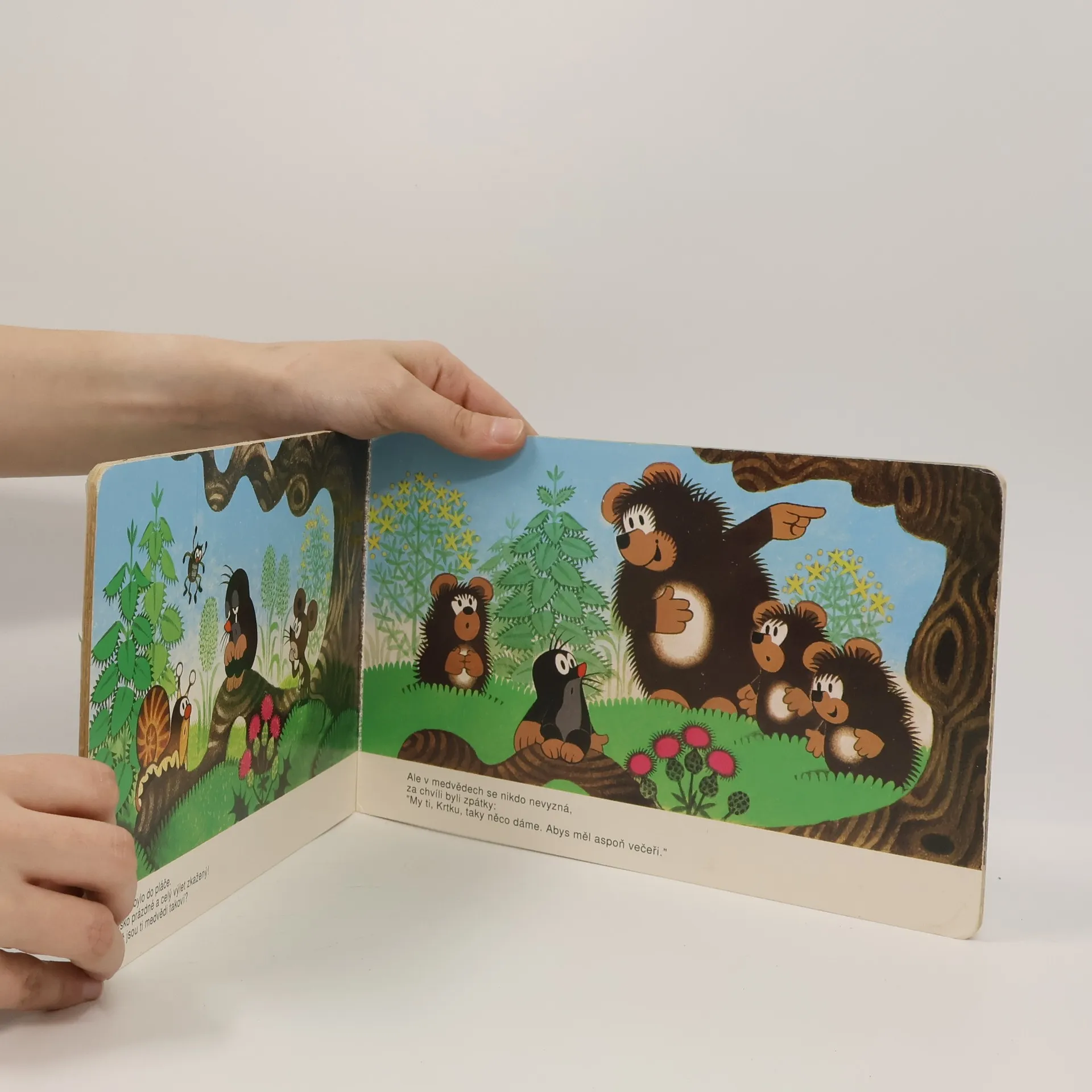 Příběh medvědí rodinky a oblíbeného krtečka. Ilustrované leporelo pro předškolní děti.
