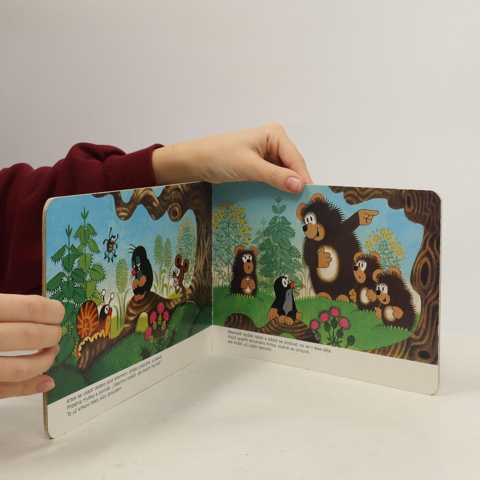 Příběh medvědí rodinky a oblíbeného krtečka. Ilustrované leporelo pro předškolní děti.