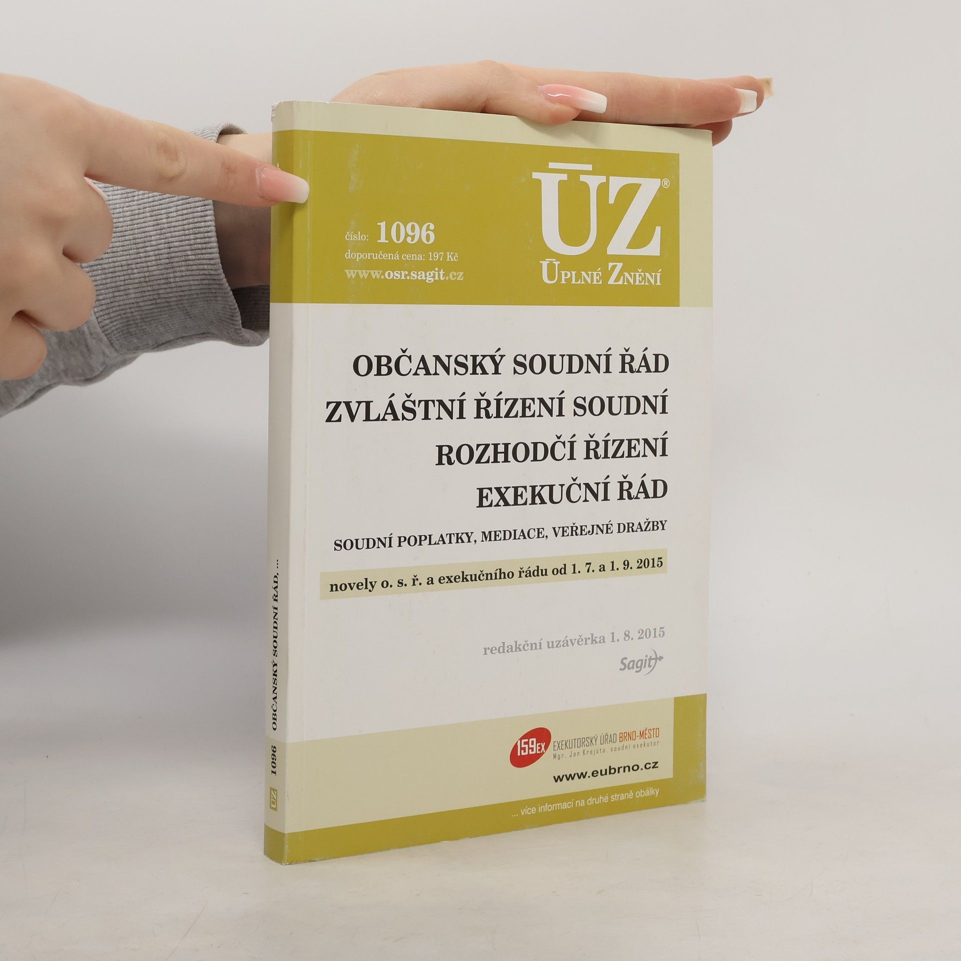 Publikace obsahuje soubor 27 právních předpisů v aktuálním znění. Od minulého vydání byl 2 významnými novelami dotčen občanský soudní řád; 2x byl změněn rovněž exekuční řád; jednu větší novelu má zákon o zvláštních řízeních soudních a zákon o soudních poplatcích.