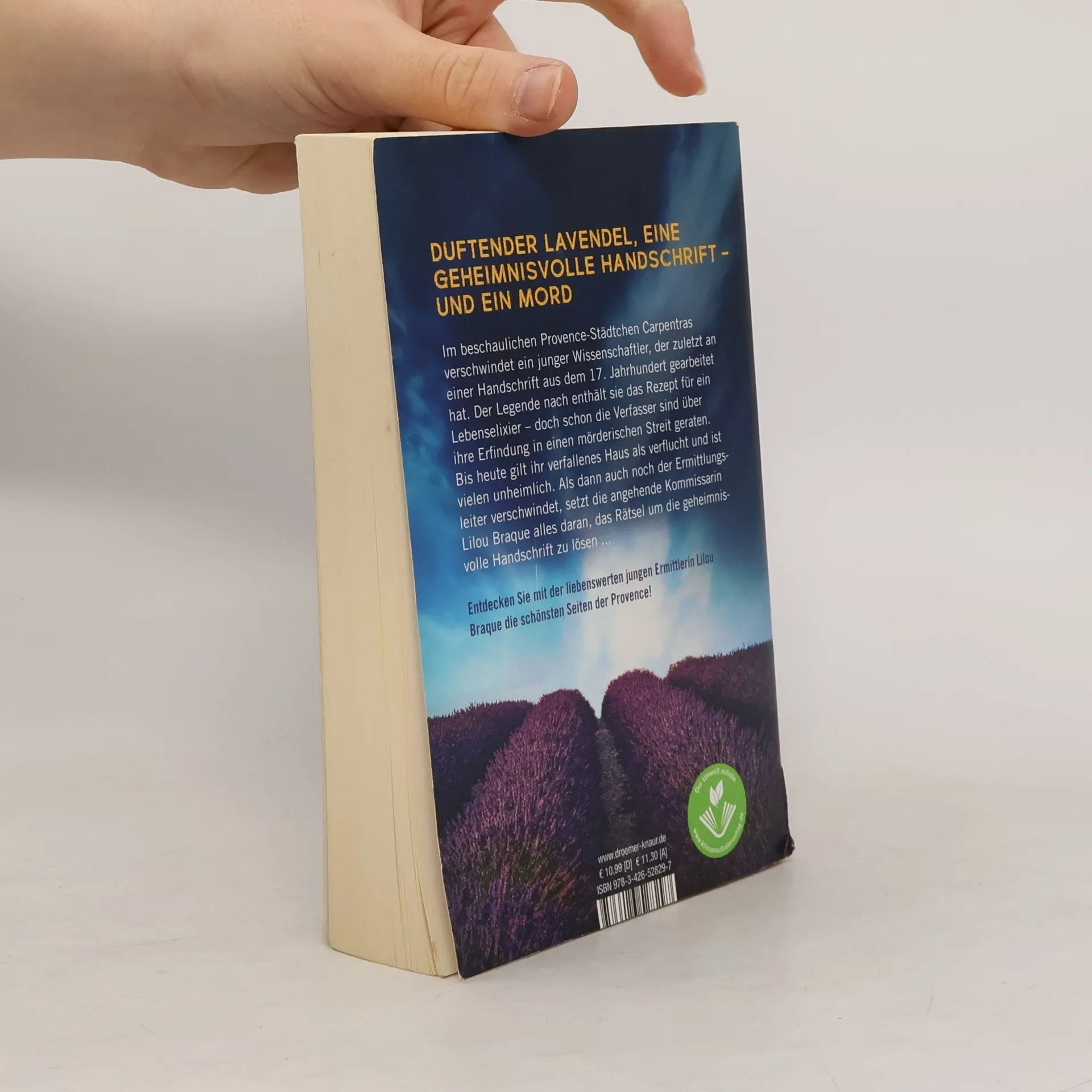 Im beschaulichen Provence-Städtchen Carpentras verschwindet ein junger Wissenschaftler, der zuletzt an einer alchemistischen Handschrift aus dem 17. Jahrhundert gearbeitet hat. Der Legende nach enthält sie das Rezept für ein lebensverlängerndes Elixier – doch schon die Verfasser, zwei Brüder, sind über ihre Entdeckung in einen mörderischen Streit geraten. Bis heute soll es in ihrem verfallenen Haus spuken. Als kurz darauf auch ihr Kollege Commandant Pouffin verschwindet, muss die junge Ermittlerin Lilou Braque dringend herausfinden, was an der Legende um die geheimnisvolle Handschrift wirklich dran ist.