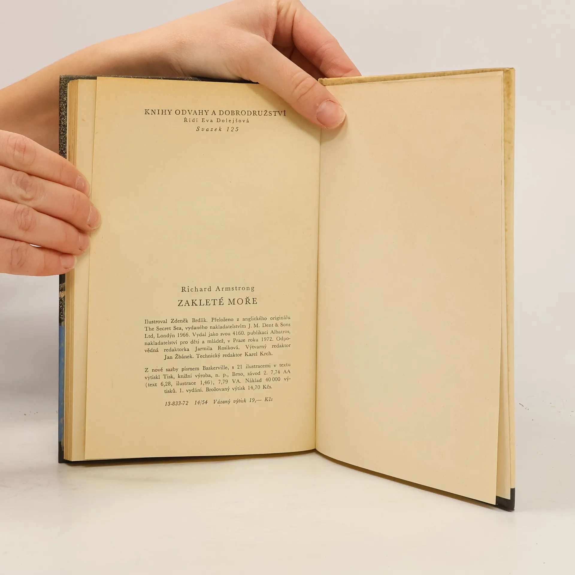 Richard Armstrong ústy svého mladičkého vypravěče předává čtenáři obraz veliké lidské odvahy, dobrodružství, jaké si my suchozemci ani neumíme představit. můžeme si jenom s Thornem, když se houpá na rozbouřeném moři v záchraném člunu, položit otázku: Bylo, či nebylo tajné moře zakleté? 13-833-72