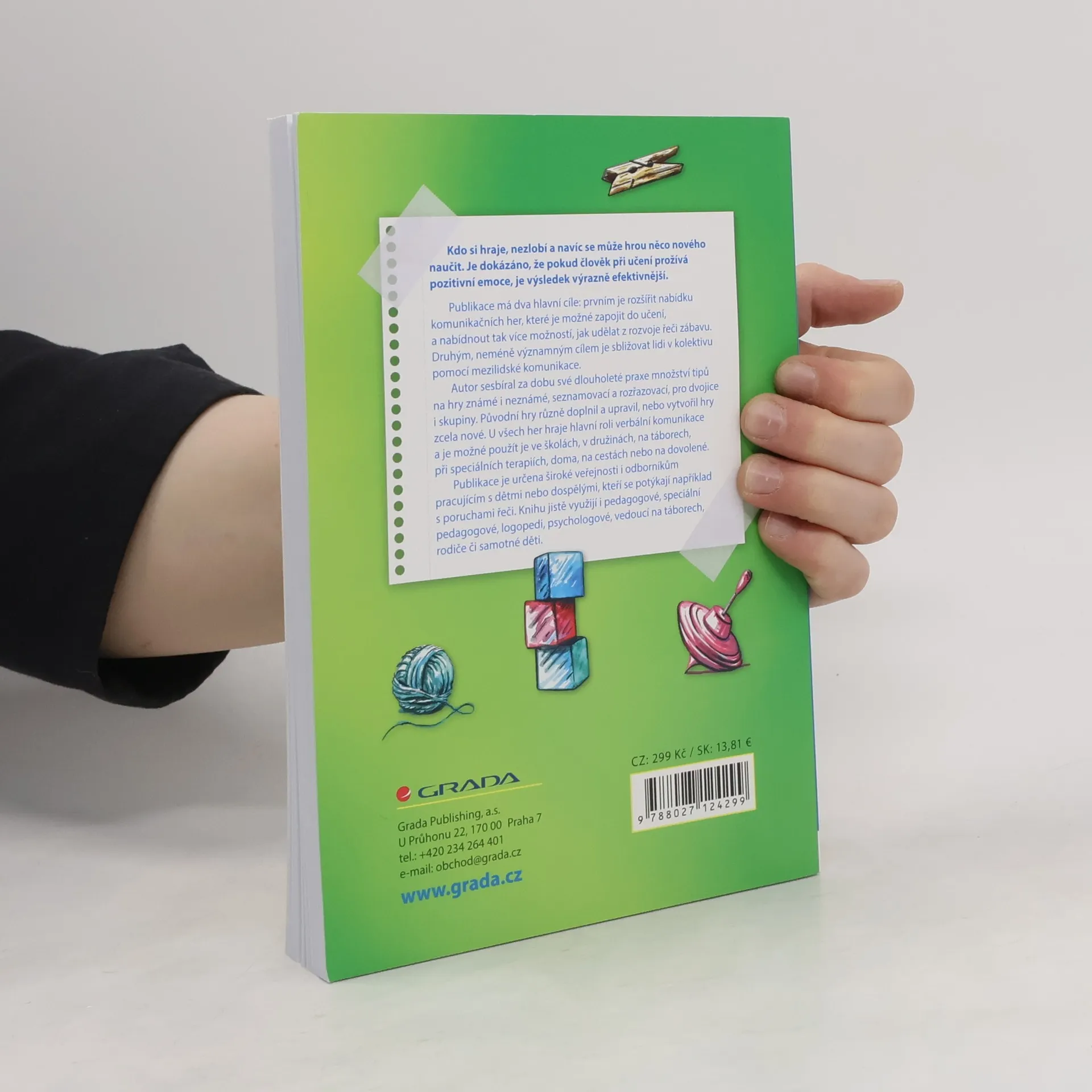 Kdo si hraje, nezlobí a navíc se může hrou něco nového naučit. Je dokázáno, že pokud člověk při učení prožívá pozitivní emoce, je výsledek výrazně efektivnější. Publikace má dva hlavní cíle: prvním je rozšířit nabídku komunikačních her, které je možné zapojit do učení, a nabídnout tak více možností, jak udělat z rozvoje řeči zábavu. Druhým, neméně významným cílem je sbližovat lidi v kolektivu pomocí mezilidské komunikace. Autor sesbíral za dobu své dlouholeté praxe množství tipů na hry známé i neznámé, seznamovací a rozřazovací, pro dvojice i skupiny. Původní hry různě doplnil a upravil, nebo vytvořil hry zcela nové. U všech her hraje hlavní roli verbální komunikace a je možné použít je ve školách, v družinách, na táborech, při speciálních terapiích, doma, na cestách nebo na dovolené. Publikace je určena široké veřejnosti i odborníkům pracujícím s dětmi nebo dospělými, kteří se potýkají například s poruchami řeči. Knihu jistě využijí i pedagogové, speciální pedagogové, logopedi, psychologové, vedoucí na táborech, rodiče či samotné děti.