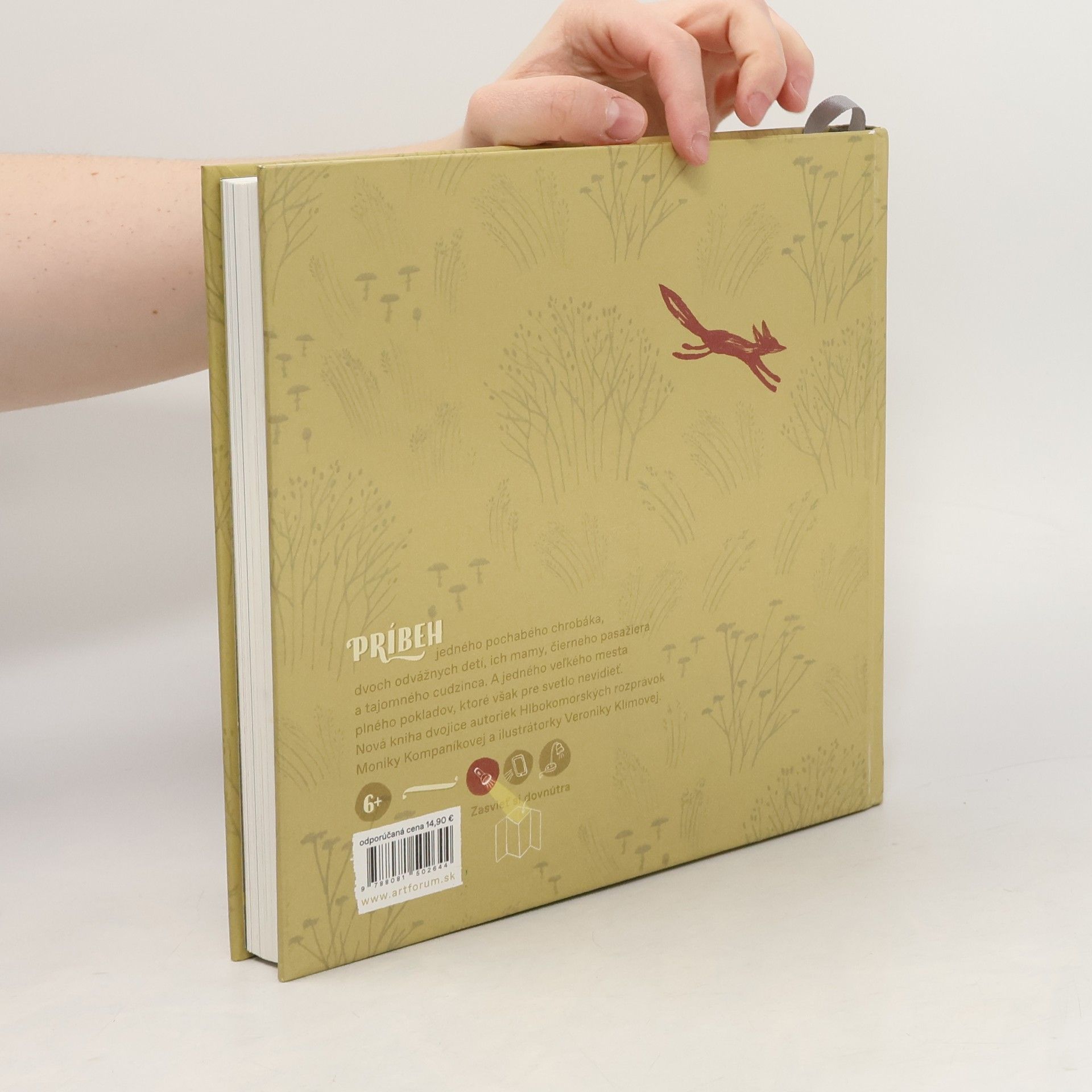 Nová kniha dvojice autoriek Hlbokomorských rozprávok - Moniky Kompaníkovej a ilustrátorky Veroniky Klímovej. Príbeh jedného pochabého chrobáka, dvoch odvážnych detí z konca sveta, ich mamy, čierneho pasažiera a tajomného cudzinca. A jedného veľkého mesta plného pokladov, ktoré však pre svetlo nevidieť. Timi a Ema bývajú na samom konci sveta, v maličkom suterénnom byte, do ktorého sa nezmestí ani len spoločná detská izba. Vynaliezavé deti si však vedia poradiť a svoj hlavný stan si rozložia vo výťahovej strojovni na streche šestnásťposchodového paneláka. Za oknom pulzujú svetlá veľkého sveta aj svetelné signály mamy, ktorá každý večer odchádza do mesta za prácou. Ako si však Timi a Ema poradia s tajomným cudzincom, ktorý sa jedného dňa nasťahuje do ich detskej izby? Prečo mamine svetlo zhaslo? Nájdu v sebe dosť odvahy, aby zistili, čo je na konci sveta a ešte kúsok za ním? Kniha s dizajnom Márie Rojko je určená deťom od šesť rokov a má špeciálne navrhnuté a vytlačené predsádky - s pomocou baterky alebo iného svetla fungujú ako nočné svetielko.