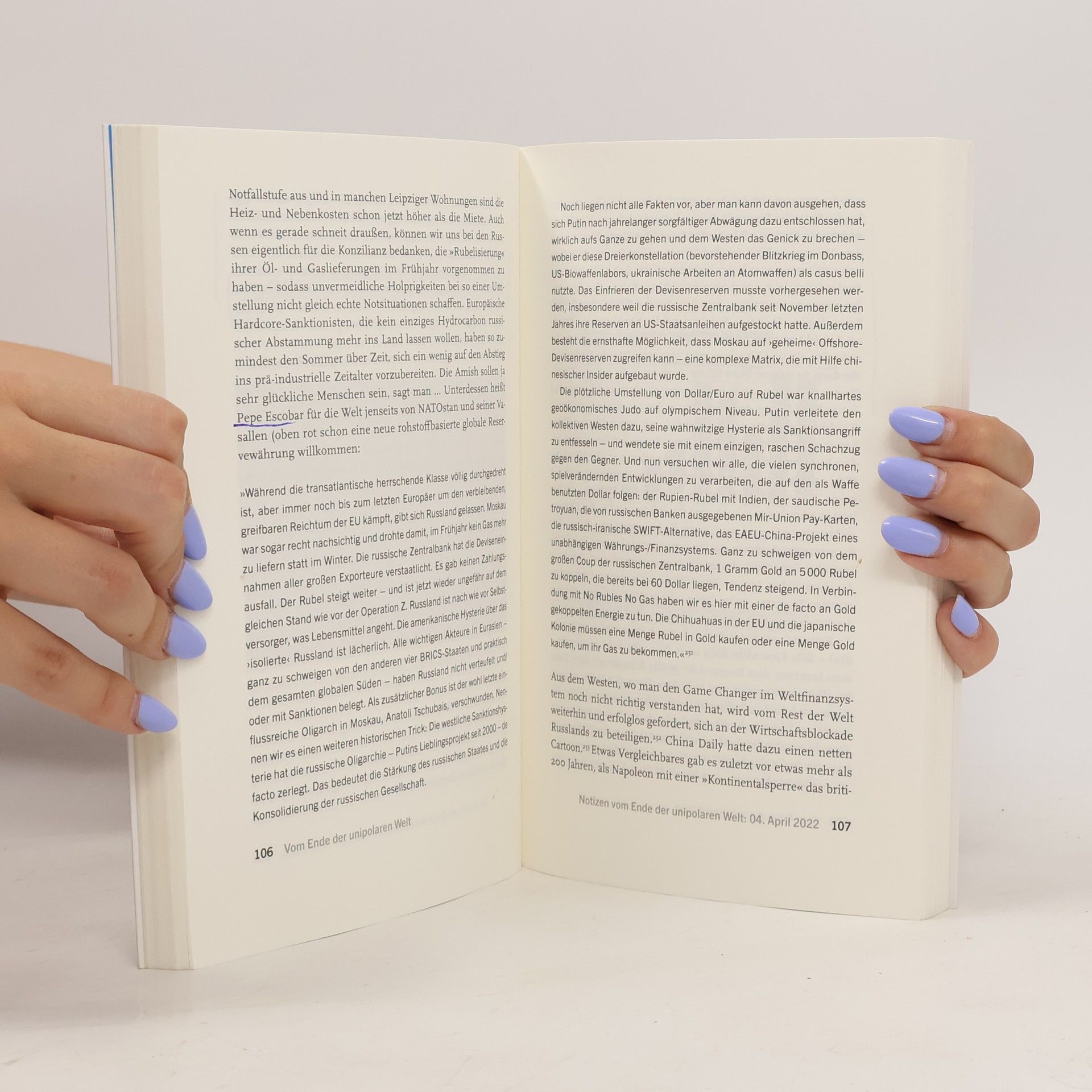 Mit "Wir sind die Guten - Ansichten eines Putinverstehers" (Westend Verlag) schrieb Mathias Bröckers (zusammen mit Paul Schreyer) 2014 über die Hintergründe des Ukraine-Konflikts eines der erfolgreichsten politischen Sachbücher des Jahres. 2019 erschien die aktualisierte und erweiterte Fassung des Bestsellers unter dem Titel "Wir sind immer die Guten", der die drohende Zuspitzung des Konflikts schon thematisiert, die mit dem militärischen Angriff Russlands im Februar 2022 eskalierte und einen Propaganda-Tsunami auslöste, der alle journalistischen Standards begrub: Die Medien, so Bröckers These, mutierten von Berichterstattern zu einer Art Kriegspartei. Bröckers hält mit "Vom Ende der unipolaren Welt" dagegen. Denn wir sind schon wieder "die Guten" und Russland samt Putin "das Ultraböse" schlechthin. Doch mit der Wirklichkeit hat das wenig zu tun. Sicher ist nur, dass die sogenannte "Militäroperation" Russlands das Ende der unipolaren Welt bedeutet; einer von den USA politisch diktierten und militärisch kontrollierten internationalen Ordnung und einer Globalisierung, wie wir sie kannten.