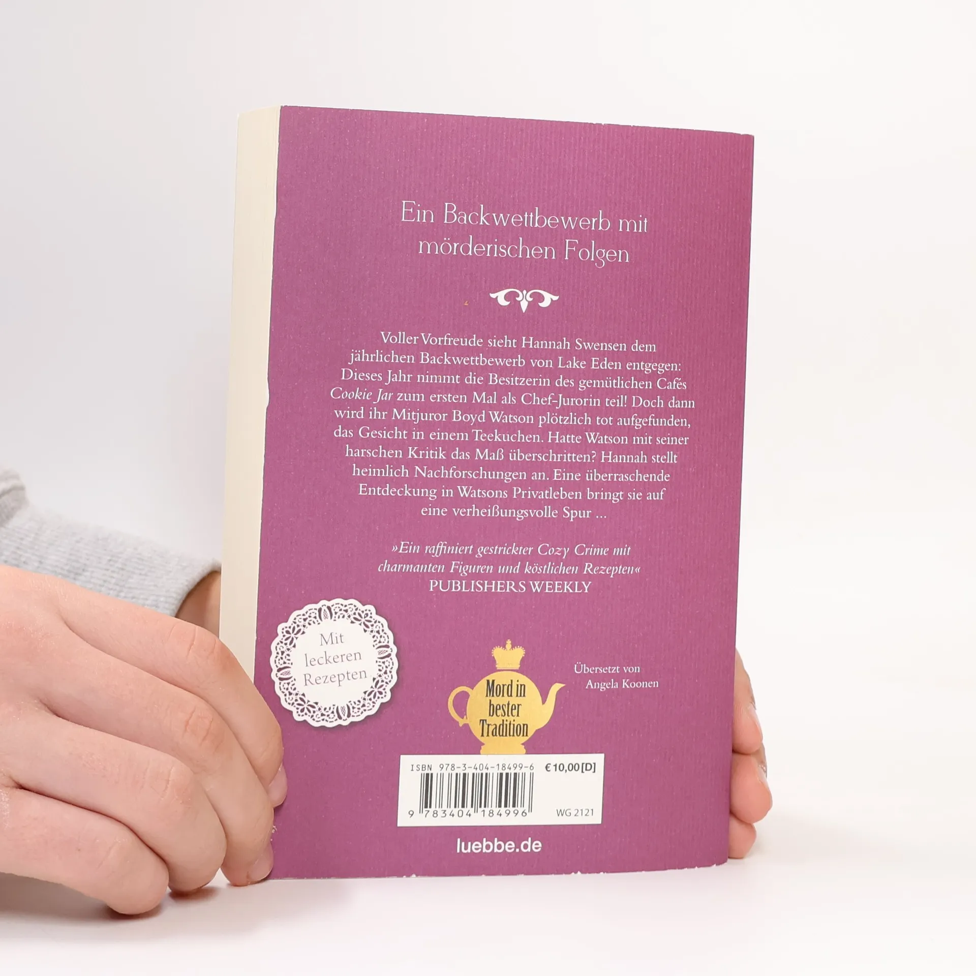 Ein Backwettbewerb mit mörderischen Folgen - Voller Vorfreude sieht Hannah Swensen dem jährlichen Backwettbewerb von Lake Eden entgegen: Dieses Jahr nimmt die Besitzerin des gemütlichen Cafés Cookie Jar zum ersten Mal als Chef-Jurorin teil! Doch dann wird ihr Mitjuror Boyd Watson plötzlich tot aufgefunden, das Gesicht in einem Teekuchen. Hatte Watson mit seiner harschen Kritik das Maß überschritten? Hannah stellt heimlich Nachforschungen an. Eine überraschende Entdeckung in Watsons Privatleben bringt sie auf eine verheißungsvolle Spur ... "Ein raffiniert gestrickter Cozy Crime mit charmanten Figuren und köstlichen Rezepten" PUBLISHERS WEEKLY