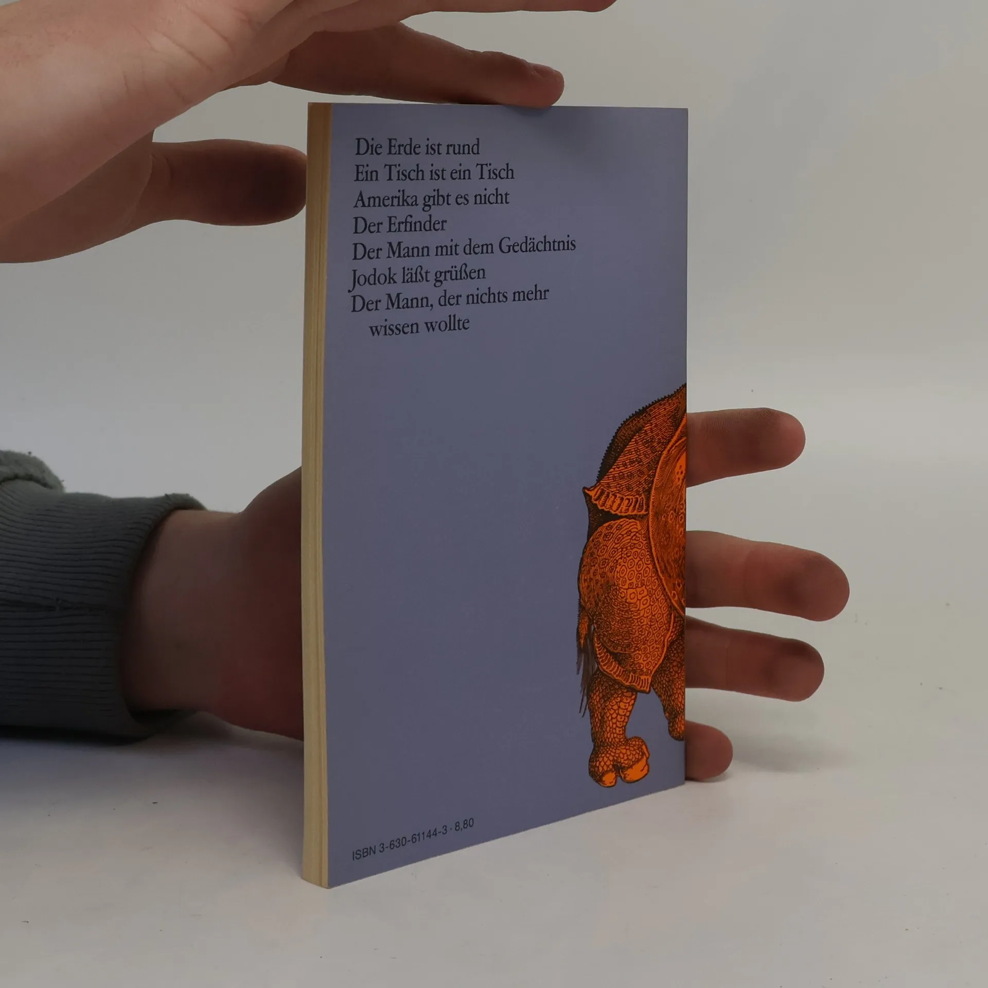 Sieben Geschichten für große und kleine Kinder, für Leser, die nicht aufgehört haben zu fragen, was wäre, wenn. Sieben Geschichten, in denen sonderbare Käuze, scheiternde, lächerliche Rebellen, Nachfahren des Ritters von der traurigen Gestalt es wagen, der Unabänderlichkeit des Bestehenden Schwierigkeiten zu machen. Da ist ein Mann, der weiß, aber nicht glaubt, daß die Erde rund ist; da ist einer, der allen Dingen neue Namen gibt, so daß er von den anderen nicht mehr verstanden wird. Einer, der behauptet, Amerika gibt es gar nicht; oder da ist der Erfinder, der lauter Sachen erfindet, die es schon gibt. Da ist der Mann, der den ganzen Fahrplan auswendig weiß, ohne je gereist zu sein, und der, als er sieht, daß man am Schalter ebensoviel weiß, anfängt, alle Treppenstufen der Welt zu zählen, um etwas zu wissen, was niemand sonst weiß.