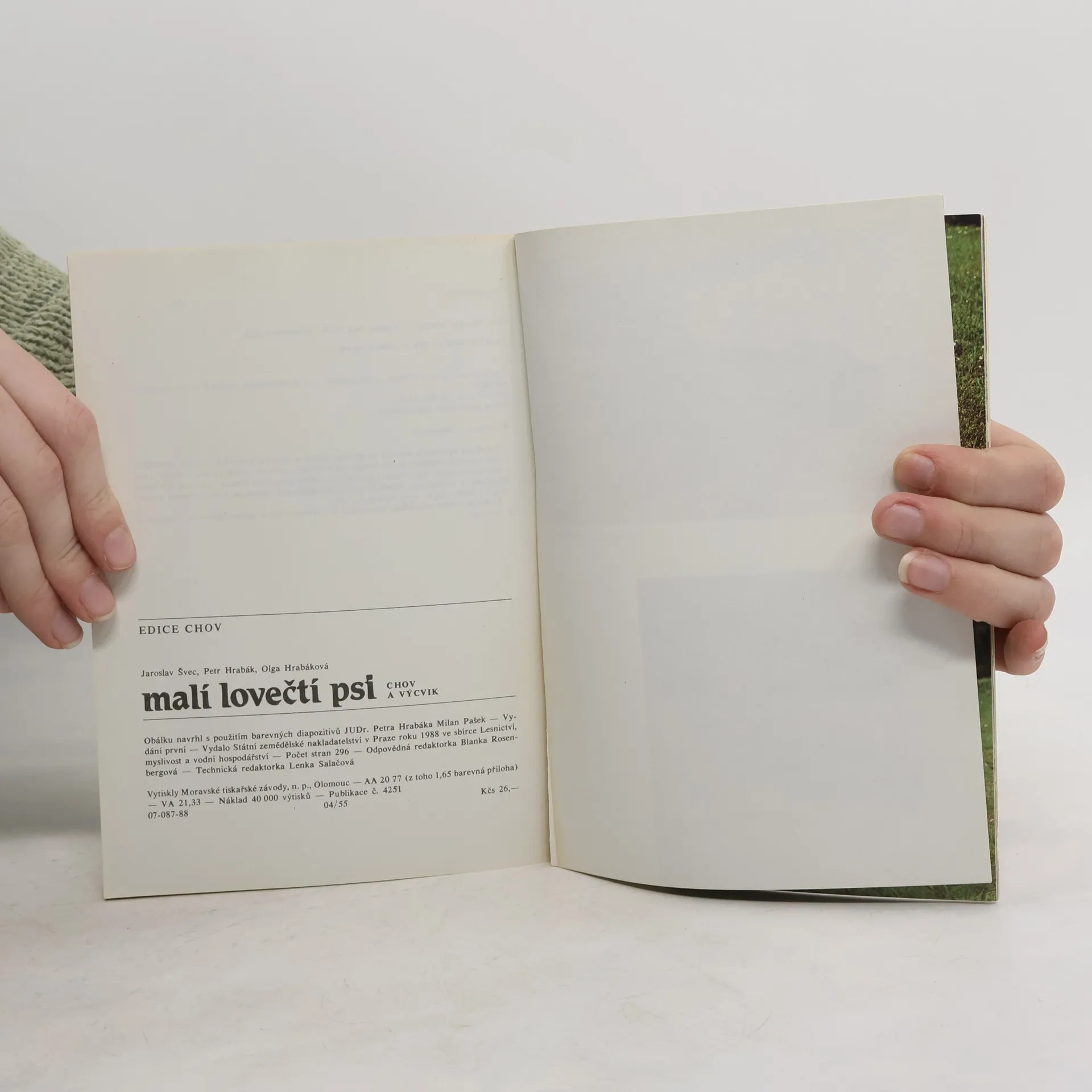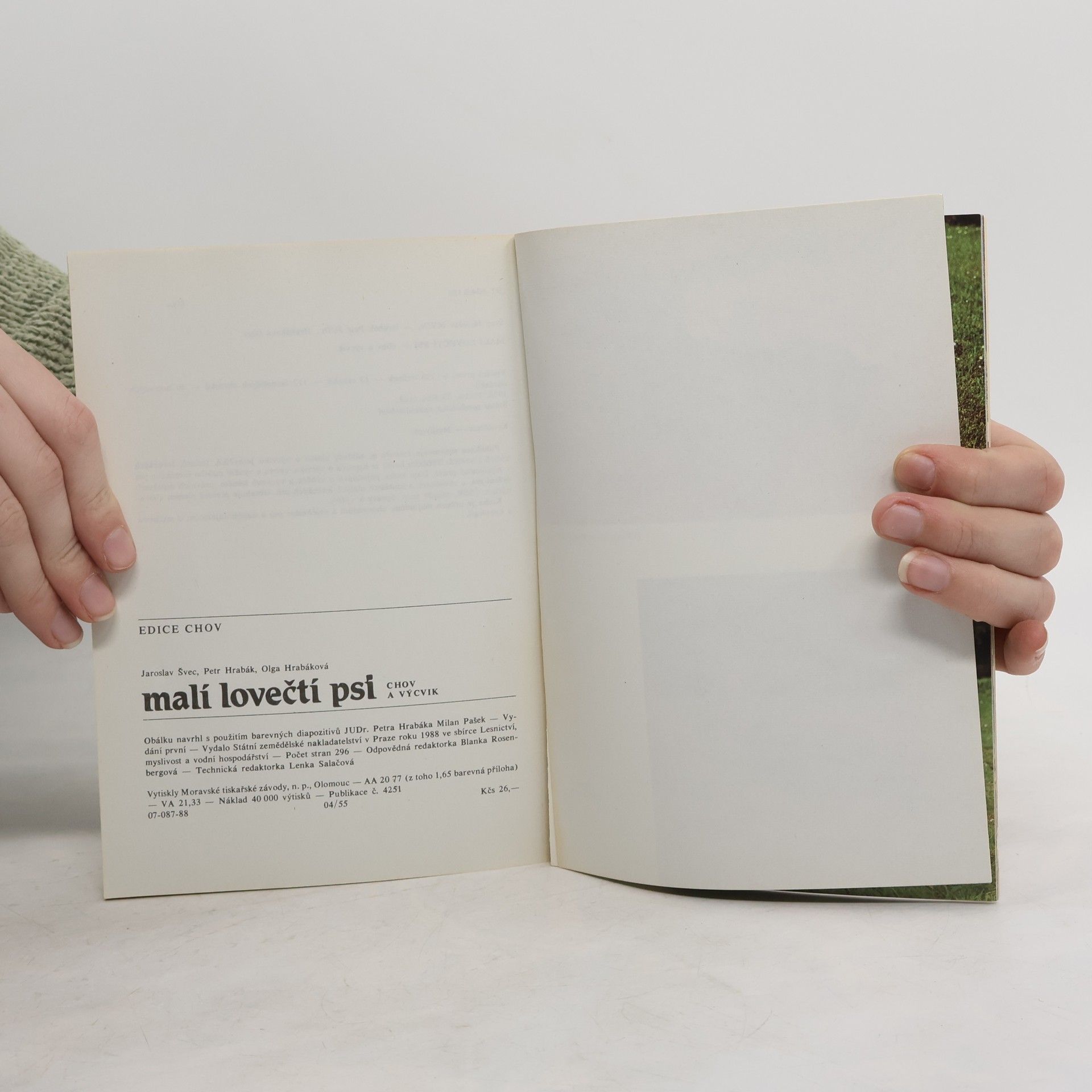Majitelům, chovatelům a cvičitelům se dostává do rukou praktická příručka o chovu a výcviku jezevčíků, teriérů, loveckých slídičů a honičů. Poučí se nejen o zásadách péče, úpravy a výživy těchto psů, o jejich výcviku, chovu a využití, ale seznámí se i s výběrem a výchovouštěňat a s právními aspekty držení psa. Autoři nezapomínají ani na zkoušky a soutěže malých loveckých psů. Lektorovali: Vladimír Černý, Josef Němec. Obrázky nakreslila: Olga Hrabáková. Autor fotografií: JUDr. Petr Hrabák. Obálku navrhl s použitím barevných diapozitivů JUDr. Petra Hrabáka Milan Pašek. Vydání první. 296 stran, 13 tabulek, 112 černobílých obrázků, 40 barevných obrázků. Vydalo SZN v Praze roku 1988 ve sbírce Lesnictví, myslivost a vodní hospodářství.