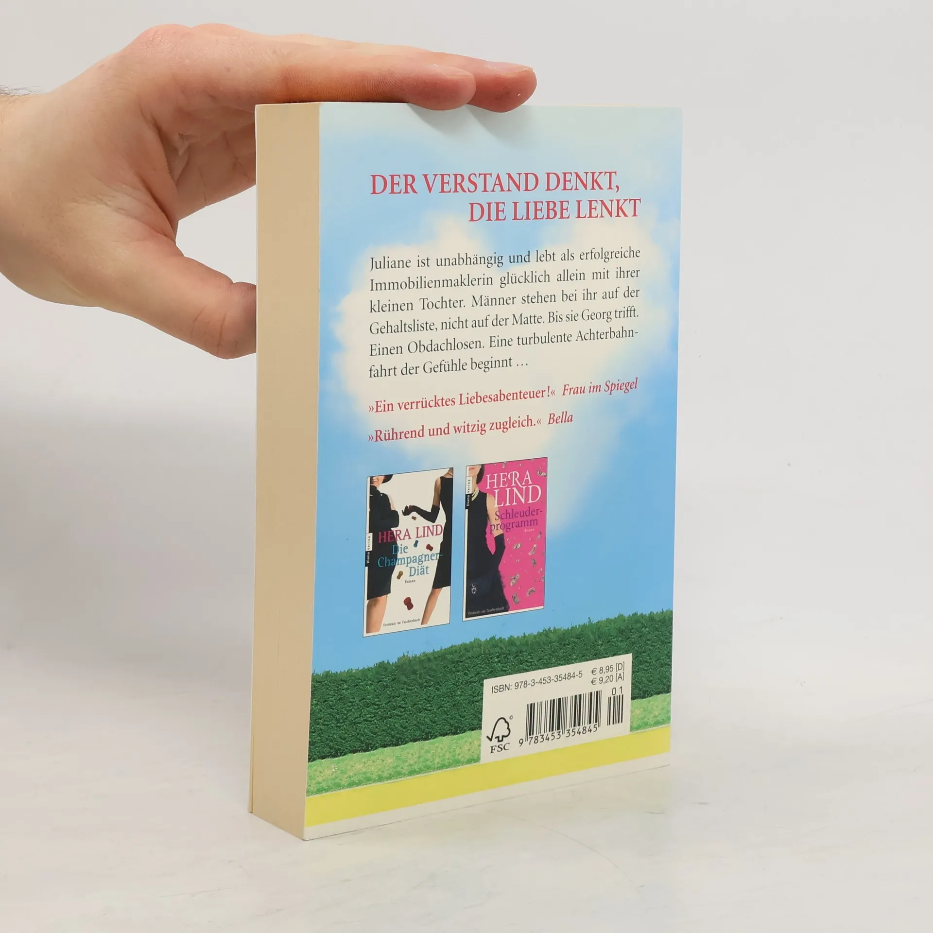 Der Verstand denkt, die Liebe lenkt Juliane ist unabhängig und lebt als erfolgreiche Immobilienmaklerin glücklich allein mit ihrer kleinen Tochter. Männer stehen bei ihr auf der Gehaltsliste, nicht auf der Matte. Bis sie Georg trifft. Einen Obdachlosen. Eine turbulente Achterbahnfahrt der Gefühle beginnt …Juliane Hempel, 36 Jahre, verkauft Luxusimmobilien und ist Spitze auf ihrem Gebiet. Kaum ein Millionär, den sie nicht in ihrer Kartei hat, kaum eine Liegenschaft in Traumlage, die nicht durch ihre Vermittlung an einen solventen Kunden geraten wäre. Umso befremdlicher ist für sie die Begegnung mit einem Obdachlosen, der es sich auf ihrer Lieblingsparkbank – und schlimmer noch – in den leer stehenden Villen gemütlich macht. Je leidenschaftlicher Juliane versucht, sich diesen Mann vom Hals zu schaffen, umso häufiger begegnen sie sich. Sie rast vor Wut, er amüsiert sich. Erst als sie Georgs Vorgeschichte erfährt, ändert sich Julianes Einstellung. Die Vernunft sagt ihr, sich nicht auf ihn einzulassen, das Herz sagt etwas anderes. Als er eines Tages unschuldig im Gefängnis landet, muss Juliane sich entscheiden. Die spritzige Geschichte einer außergewöhnlichen Liebe — mit Verve, Tempo und viel Humor erzählt.