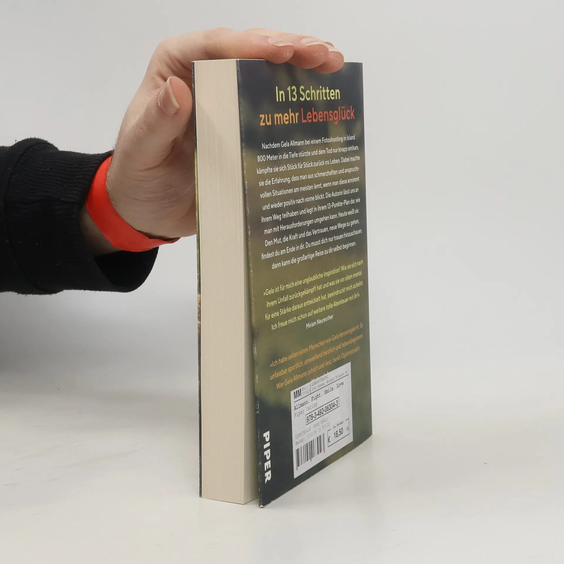 In 13 Schritten zu mehr Lebensglück Nachdem Gela Allmann bei einem Fotoshooting in Island 800 Meter in die Tiefe stürzte und dem Tod nur knapp entkam, kämpfte sie sich Stück für Stück zurück ins Leben. Dabei machte sie die Erfahrung, dass man aus schmerzhaften und anspruchsvollen Situationen am meisten lernt, wenn man diese annimmt und wieder positiv nach vorne blickt. Die Autorin lässt uns an ihrem Weg teilhaben und legt in ihrem 13-Punkte-Plan dar, wie man mit Herausforderungen umgehen kann. Heute weiß Den Mut, die Kraft und das Vertrauen, neue Wege zu gehen, findest du am Ende in dir. Du musst dich nur trauen hinzuschauen, dann kann die großartige Reise zu dir selbst beginnen. »Gela ist für mich eine unglaubliche Inspiration! Wie sie sich nach ihrem Unfall zurückgekämpft hat und was sie vor allem mental für eine Stärke daraus entwickelt hat, beeindruckt mich zutiefst. Ich freue mich schon auf weitere tolle Abenteuer mit ihr!«Miriam Neureuther »Ich habe selten einen Menschen wie Gela kennengelernt. So unfassbar sportlich, umwerfend herzlich und lebensbejahend. Wer Gela Allmann zuhört und liest, tankt Optimismus!«Marlene Lufen
