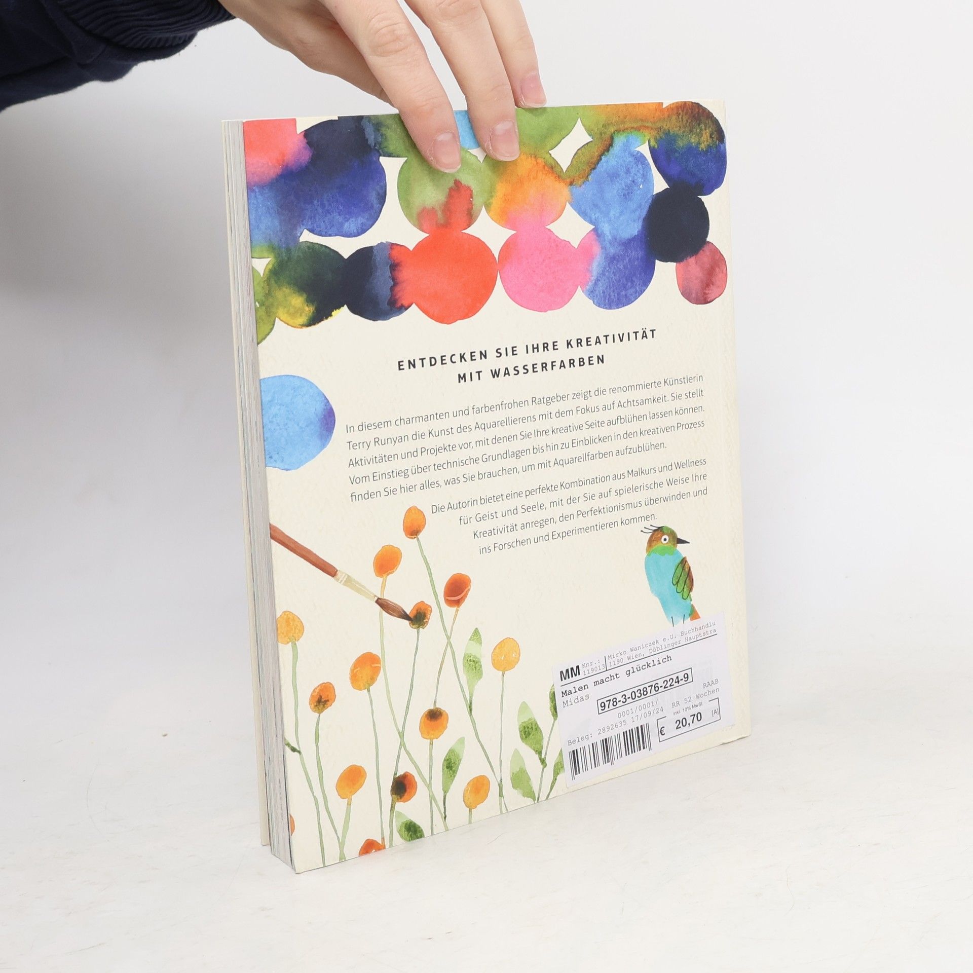 Perfekt unvollkommene Aquarelle: Einfach losmalen – aber mit Stil!Experimente mit Farbverläufen und verschwommenen Umrissen – Wasserfarben laden förmlich dazu ein, der eigenen Kreativität völlig freien Lauf zu lassen. Die bildende Künstlerin Terry Runyan war lange als Illustratorin beschäftigt. Mittlerweile steht bei ihren Bildern das Unvollkommene im Vordergrund. Aquarellbilder, die mit Farben und Formen spielen und die Fantasie beflügeln. Mit diesem Kreativ-Buch unterstützt sie Anfänger dabei, grundlegende Aquarell-Techniken zu erwerben. Einfache Projekte dienen als erste Übungen, um die gestalterische Seite aufblühen zu lassen – ohne Perfektionsdruck, nur aus Freude am Schaffen!- Stressfrei Malen lernen: Basis-Wissen zu Technik und Material- Achtsamkeitstraining mit dem Pinsel – ganz im Moment auf dem Papier sein- Spaß statt Perfektion: Wie Sie sich von Ihrem inneren Kritiker befreien- Kreativität statt Stress: Kurze Maleinheiten als Pause im Alltag- Einfache Aquarell-Bilder zum Nachmalen und Ideen für eigene ProjekteFarbkleckse, die entspannen: eine neue Art zu malenAus den Grundfarben Farbtöne mischen, zunächst scheinbar formlose Flecken zu Tieren, Pflanzen oder Alltagsgegenständen umgestalten – in diesem Malbuch geht es nicht um das perfekte Gemälde. Der Fokus liegt auf der Wirkung, die kreative Tätigkeiten auf uns haben. Aquarellmalerei macht glücklich, entspannt und lässt die Gedanken zur Ruhe kommen – malen Sie los!