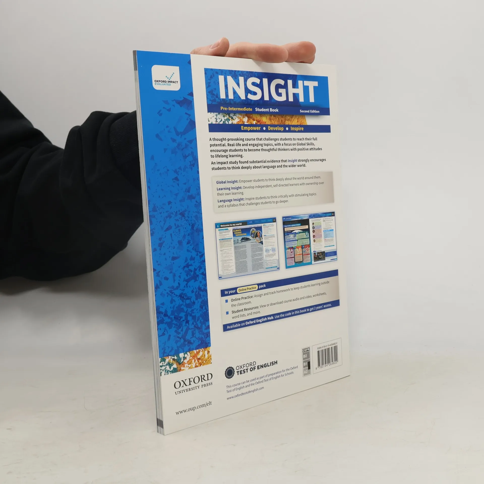 Published in 2022, this resource includes a Print Student Book and 2 years' access to Online Practice and Student Resources. The Student Book facilitates classroom participation, while Online Practice extends learning beyond the classroom, making it ideal for students who prefer print materials. The second edition features a robust Assessment for Learning package designed to help learners progress and achieve their goals, with lesson features, teacher's notes, and tests that support regular informal assessments and effective feedback. Professional Development support is available through video tutorials, focus papers, and short modules that introduce key methodologies. All digital materials are accessible via the Oxford English Hub, a comprehensive learning platform. Key features include a new emphasis on Global Skills, fostering lifelong learning and success, alongside thought-provoking texts that encourage critical thinking on contemporary issues. The updated Assessment for Learning focus includes "Assess Your Progress" sections in the Workbook to promote student ownership of their learning. Enhanced writing lessons provide model texts to guide students, while a vocabulary syllabus is supported by Vocabulary Extra pages. Grammar sections and integrated skills pages prepare students for real-world English usage, and Online Practice offers interactive activities for grammar, vocabulary, and skills enhancement.