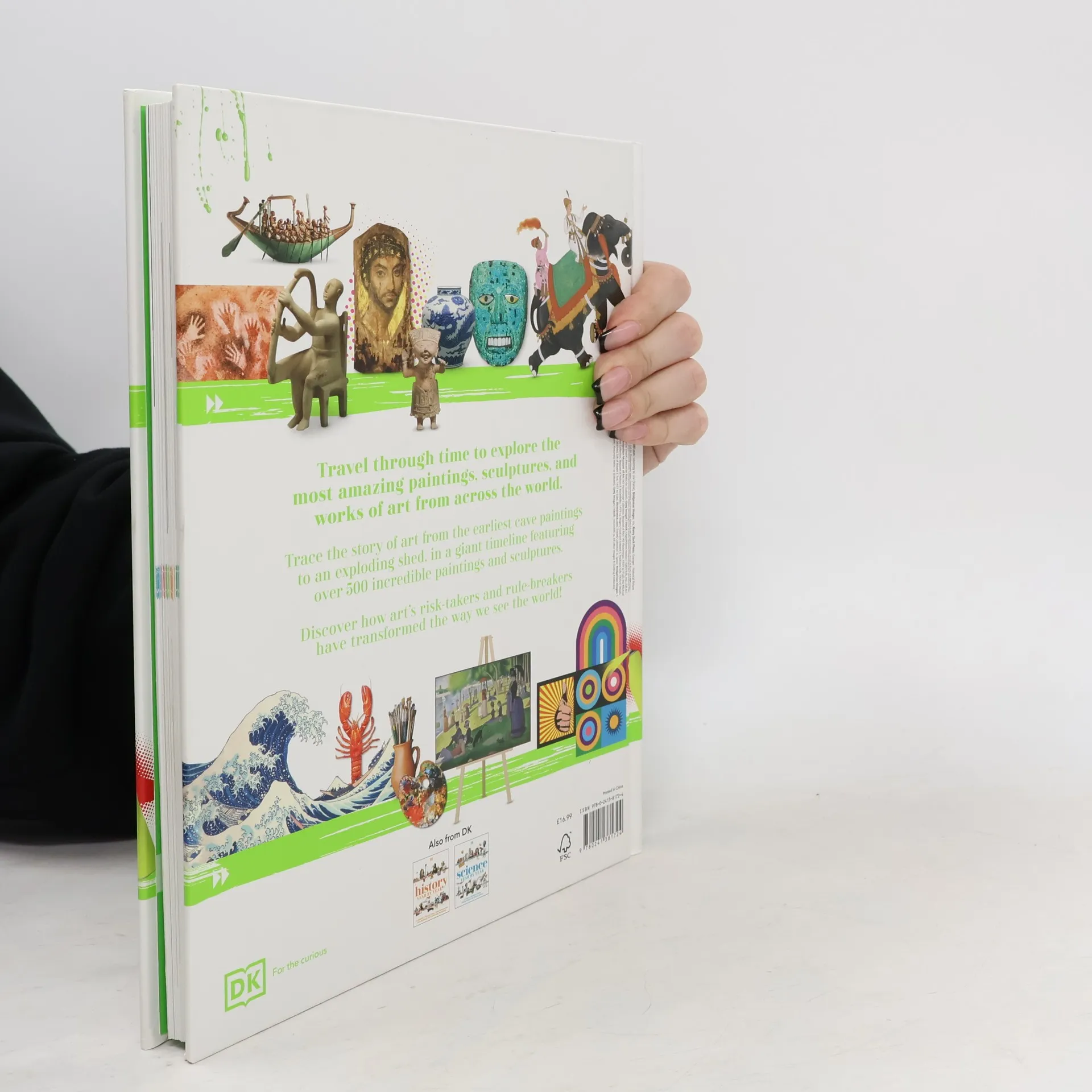 Travel through time to discover the paintings and sculptures that enrich our world. This brilliant book has a single timeline running through it - a glorious gallery of art through history, from prehistoric cave paintings to street art, and everything in between. Art movements such as the Renaissance, Impressionism, Surrealism, and Pop Art are explored and explained. There are biographies, too, of key figures behind some of the world's best-known artworks, from Rembrandt to Rodin, Botticelli to Banksy. With every story plotted on a timeline, the pages give a snapshot of each era, and reveal reveal the influences and connections behind the artworks and artistic movements that have reflected our world. With more than 1,000 images of paintings, drawings, photographs, and sculptures, Art Year by Year is the ultimate visual guide to the history of art, century by century, year by year.