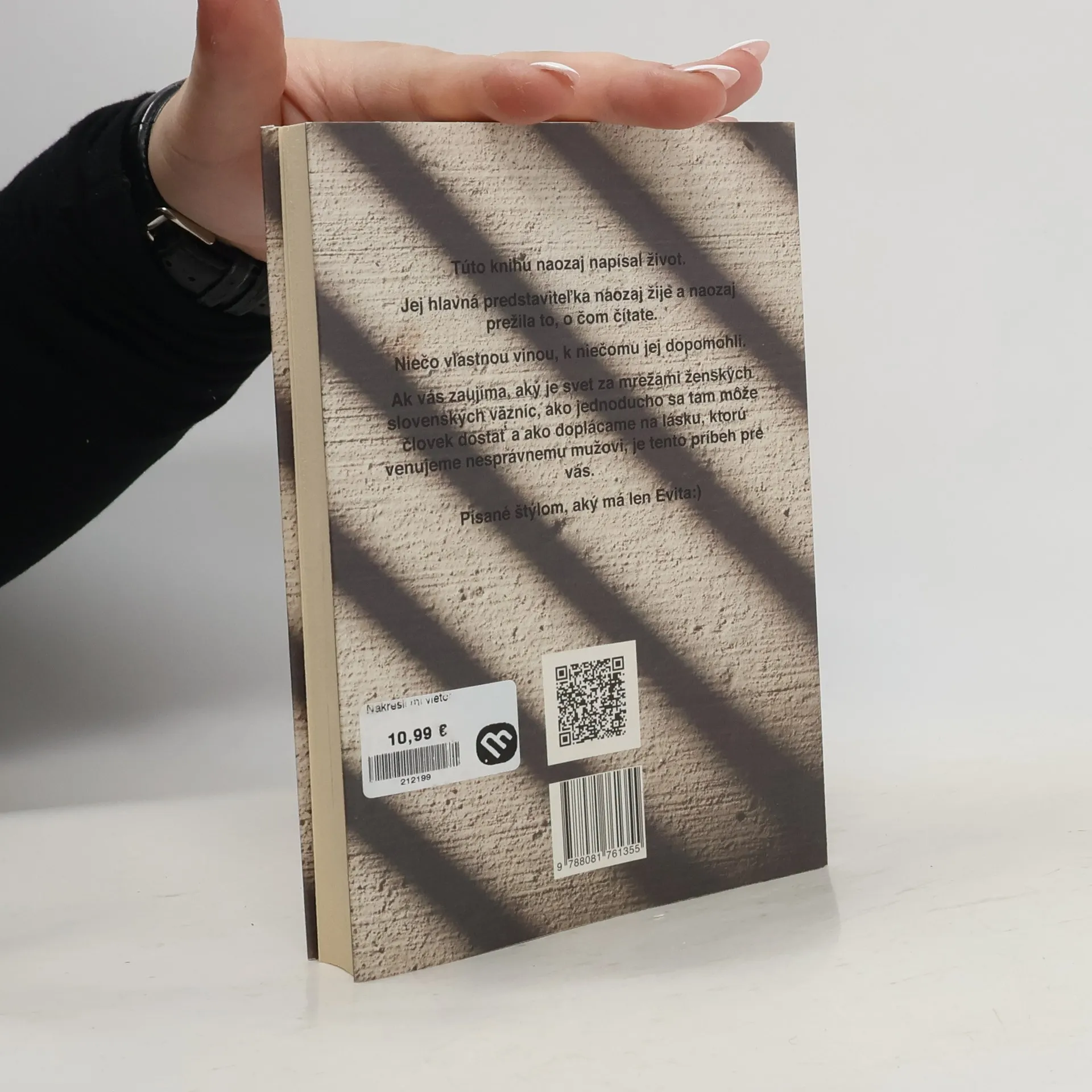 Kniha o tom, aká tenká je hranica medzi správnym a nesprávnym, aká krehká je sebaláska v porovnaní s túžbou po tom, aby sme boli milované mužom... Je o materinskej láske, o zlyhaní, o ľudskej zlobe a o tom, že za mrežami slovenských väzníc sedí mnoho osudov, ktoré sa do novín nedostanú a ktoré si tam, v „chládku“ musia vytvoriť svoj vlastný svet....
