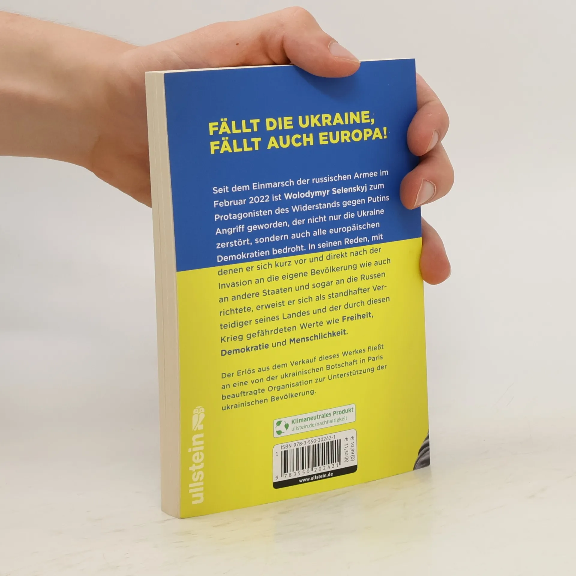 Fällt die Ukraine, fällt auch Europa! Die wichtigsten Reden des ukrainischen Präsidenten. Wolodymyr Selenskyj ist zum Protagonisten des Widerstands gegen den Einmarsch der russischen Armee im Februar 2022 geworden. Putins Angriff zerstört dabei nicht nur die Ukraine, sondern bedroht auch alle europäischen Demokratien. In seinen Reden, mit denen sich Selenskyj kurz vor und direkt nach der Invasion an die eigene Bevölkerung wie auch an andere Staaten und selbst an die Russen richtete, erweist er sich als standhafter Verteidiger seines Landes und der durch diesen Krieg gefährdeten Werte wie Freiheit, Demokratie und Menschlichkeit. Alle Erlöse aus dem Verkauf dieses Werkes fließen an eine von der ukrainischen Botschaft in Paris beauftragte Organisation zur Unterstützung der ukrainischen Bevölkerung.
