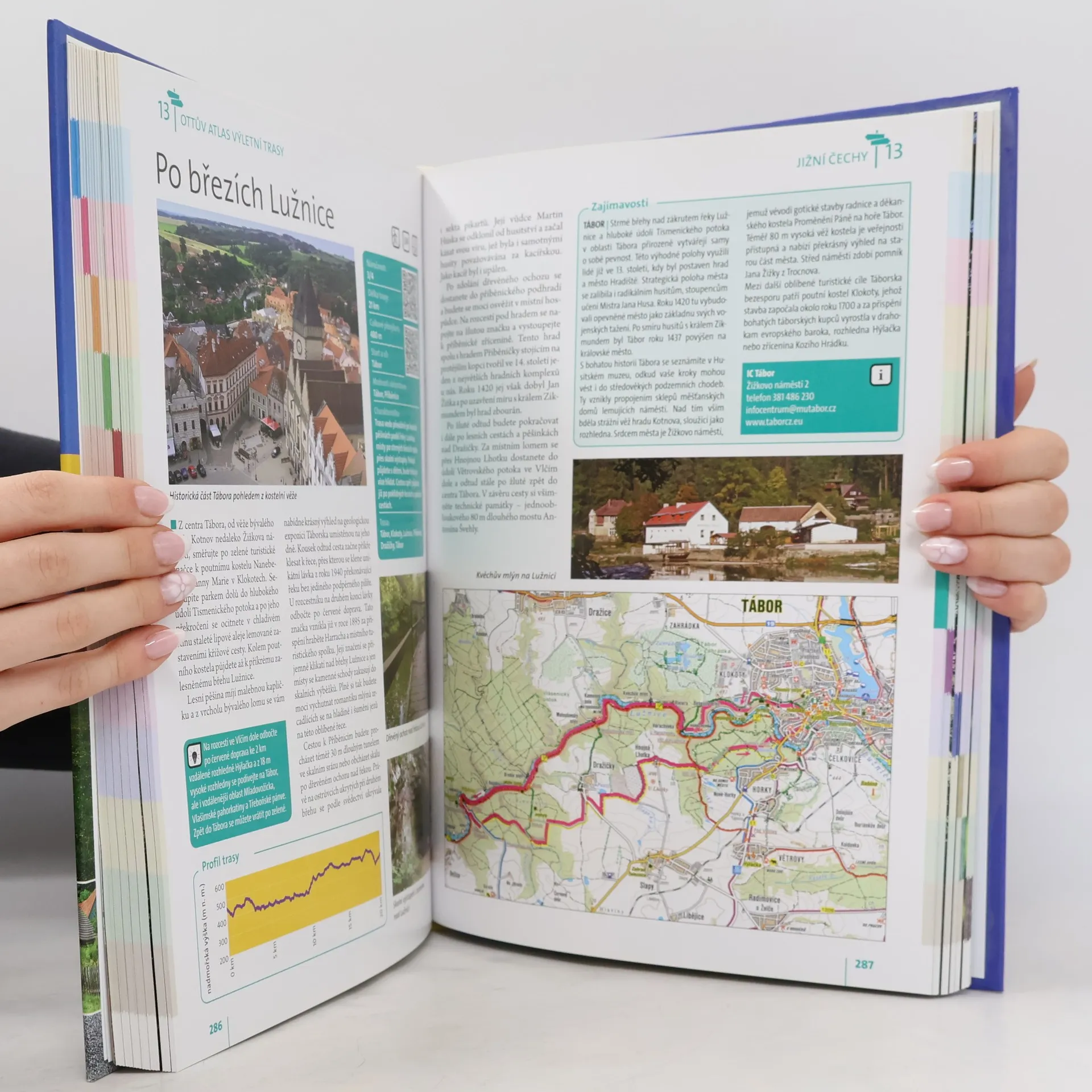Unikátní vydání turistického atlasu se zaměřuje na nejkrásnější místa Čech, Moravy a Slezska, včetně pohraničí a okolních zemí. Průvodce je rozdělen do 12 oblastí, přičemž každá nabízí více než 20 atraktivních pěších a cyklistických výletů s popisem významných přírodních a historických památek. Trasy začínají a končí v místech s dobrou dostupností hromadné dopravy a občerstvení. Výletní trasy jsou přehledně označeny a rozděleny podle náročnosti do čtyř stupňů, přičemž u každé je graf s celkovým převýšením, což umožňuje turistům vybrat si trasu odpovídající jejich schopnostem. Každá trasa obsahuje stručnou charakteristiku a popis povrchu cesty, u cyklistických tras je doporučen vhodný typ kola. Na konci každé trasy najdete informace o památkách a zajímavostech včetně užitečných kontaktů. Součástí výletů je také tip na úpravu trasy podle vlastních potřeb. Podrobná mapka zobrazuje příslušný úsek s barevně zvýrazněnou trasou, a přiložené fotografie zachycují atmosféru kraje. Kniha obsahuje QR kódy, které umožňují načíst údaje o trasách do navigace nebo chytrého telefonu. Stačí stáhnout gpx soubor a nechat se vést na svých výletech.