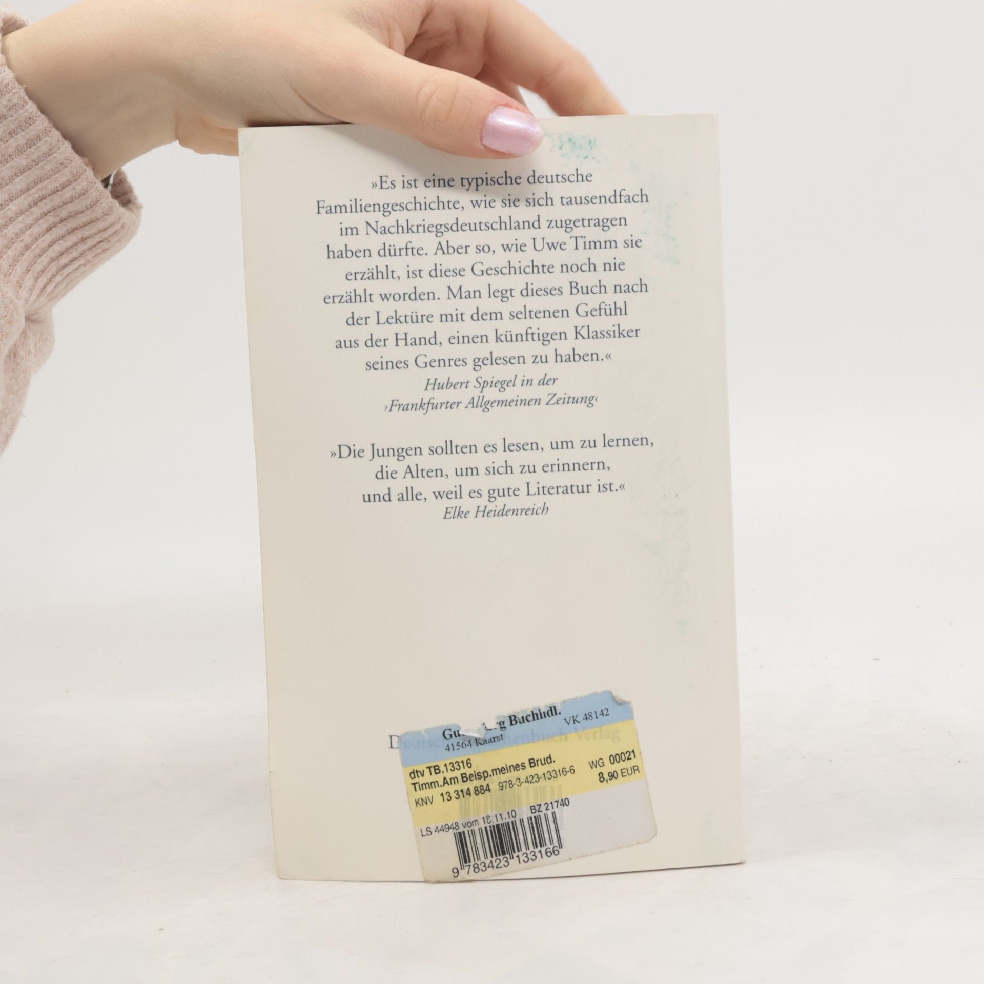 »Die Jungen sollten es lesen, um zu lernen, die Alten um sich zu erinnern, und alle, weil es gute Literatur ist.« Elke Heidenreich »Abwesend und doch anwesend hat er mich durch meine Kindheit begleitet, in der Trauer der Mutter, den Zweifeln des Vaters, den Andeutungen zwischen den Eltern. Von ihm wurde erzählt, das waren kleine, immer ähnliche Situationen, die ihn als mutig und anständig auswiesen. Auch wenn nicht von ihm die Rede war, war er doch gegenwärtig, gegenwärtiger als andere Tote, durch Erzählungen, Fotos und in den Vergleichen des Vaters, die mich, den Nachkömmling, einbezogen.« Wer war dieser Karl-Heinz Timm, geboren 1924 in Hamburg, gestorben 1943 in einem Lazarett in der Ukraine? Warum hat er sich freiwillig zur Waffen-SS gemeldet? Wie ging er mit der Verpflichtung zum Töten um? Welche Optionen hatte er, welche Möglichkeiten blieben ihm verschlossen? Wo ist der Ort der Schuld, wo der des Gewissens bei den Eltern, die ihn überlebt haben?