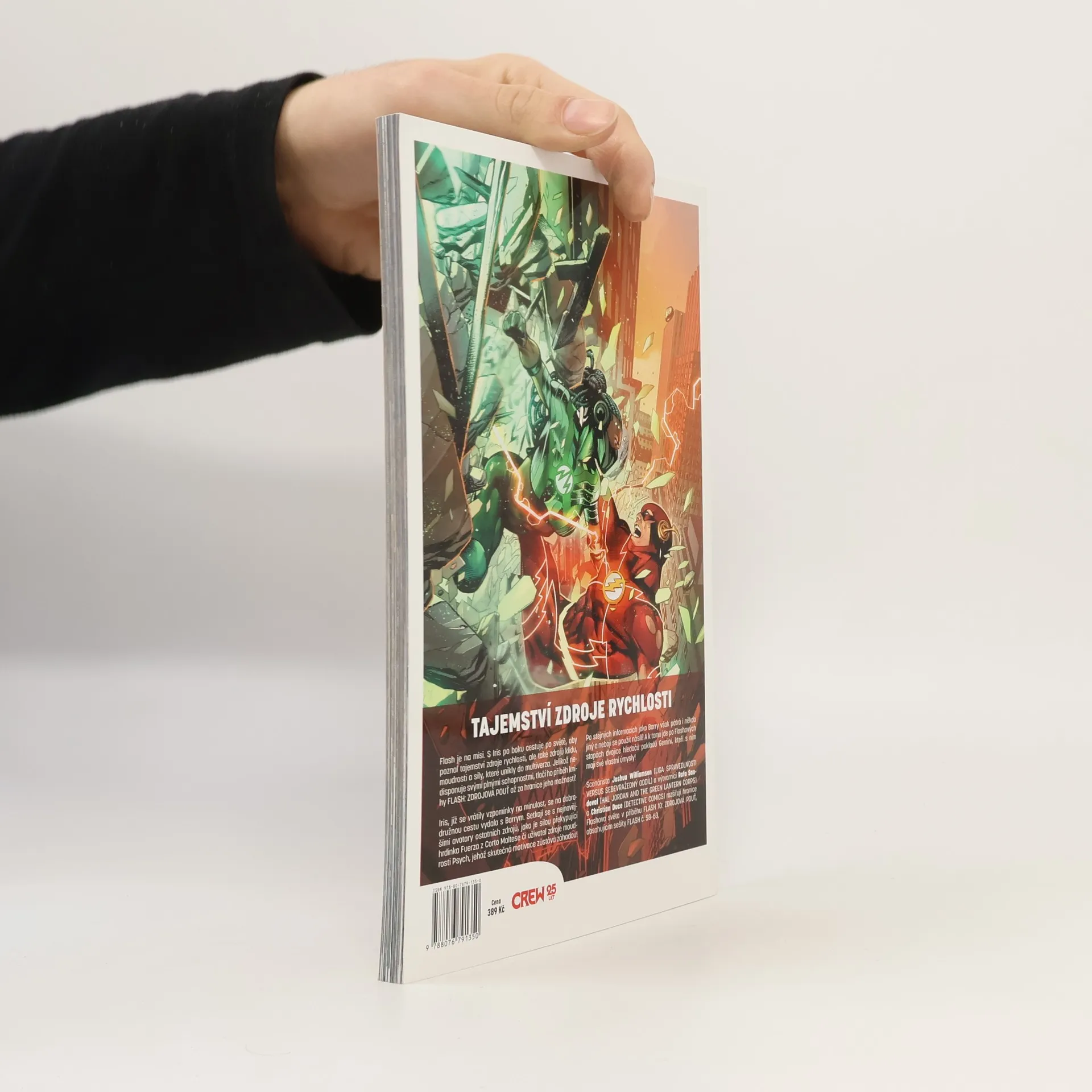 TAJEMSTVÍ ZDROJE RYCHLOSTI Flash je na misi. S Iris po boku cestuje po světě, aby poznal tajemství zdroje rychlosti, ale také zdrojů klidu, moudrosti a síly, které unikly do multiverza. Jelikož nedisponuje svými plnými schopnostmi, tlačí ho příběh FLASH 9: ZDROJOVÁ POUŤ až za hranice jeho možností! Iris, jíž se vrátily vzpomínky na minulost, se na dobrodružnou cestu vydala s Barrym. Setkají se s nejnovějšími avatary ostatních zdrojů, jako je silou překypující hrdinka Fuerza z Corto Maltese či uživatel zdroje moudrosti Psych, jehož skutečná motivace zůstává záhadou! Po stejných informacích jako Barry však pátrá i někdo jiný a nebojí se použít násilí! A k tomu jde po Flashových stopách dvojice hledačů pokladů Gemini, kteří s ním mají své vlastní úmysly! Scenárista Joshua Williamson (LIGA SPRAVEDLNOSTI VERSUS SEBEVRAŽEDNÝ ODDÍL) a výtvarníci Rafa Sandoval (HAL JORDAN AND THE GREEN LANTERN CORPS) a Christian Duce (DETECTIVE COMICS) rozšiřují hranice Flashova světa v příběhu FLASH 10: ZDROJOVÁ POUŤ, obsahujícím sešity FLASH č. 58–63.