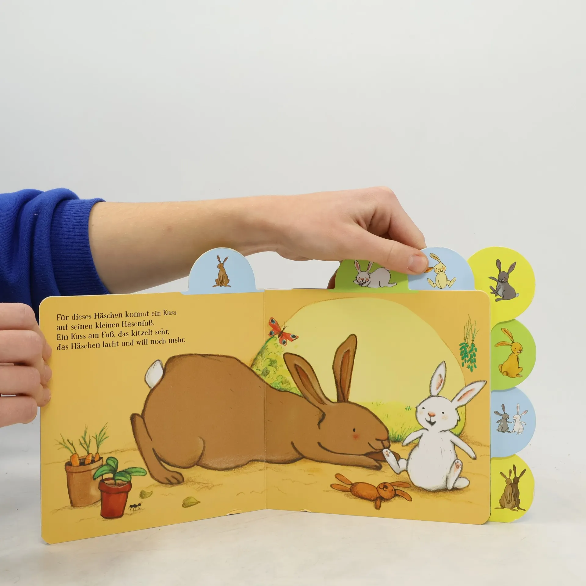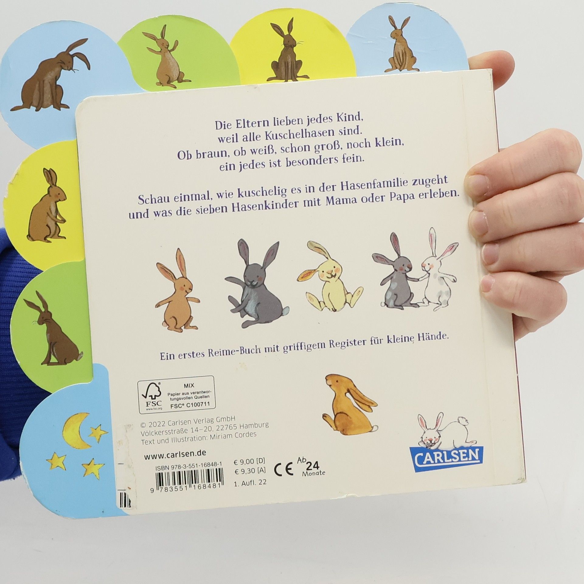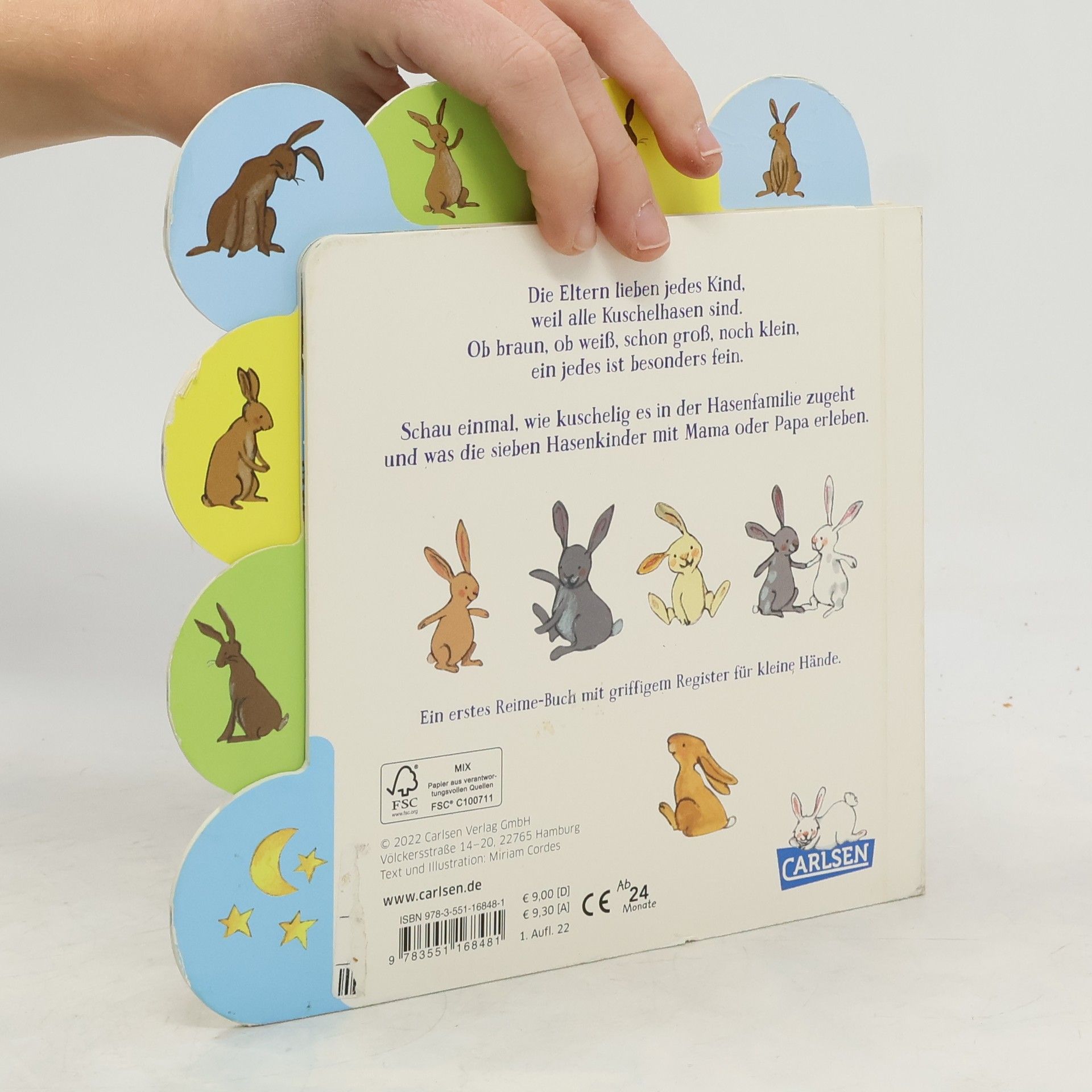 Spielen, Kuscheln, Liebhaben ... Papa Hase und Mama Hase sind für alle ihre Hasenkinder da. Jedes Häschen ist anders und holt sich seine Zuneigung auf seine eigene Weise. Und abends? Da kuscheln sich alle gemeinsam ins Hasennest. Ein erstes Reimebuch rund um die sieben kleinen Hasenkinder - mit griffigem Register für kleine Hände. Ein wunderbares Geschenk für Kleinkinder nicht nur zur Osterzeit, sondern zu jeder Zeit.