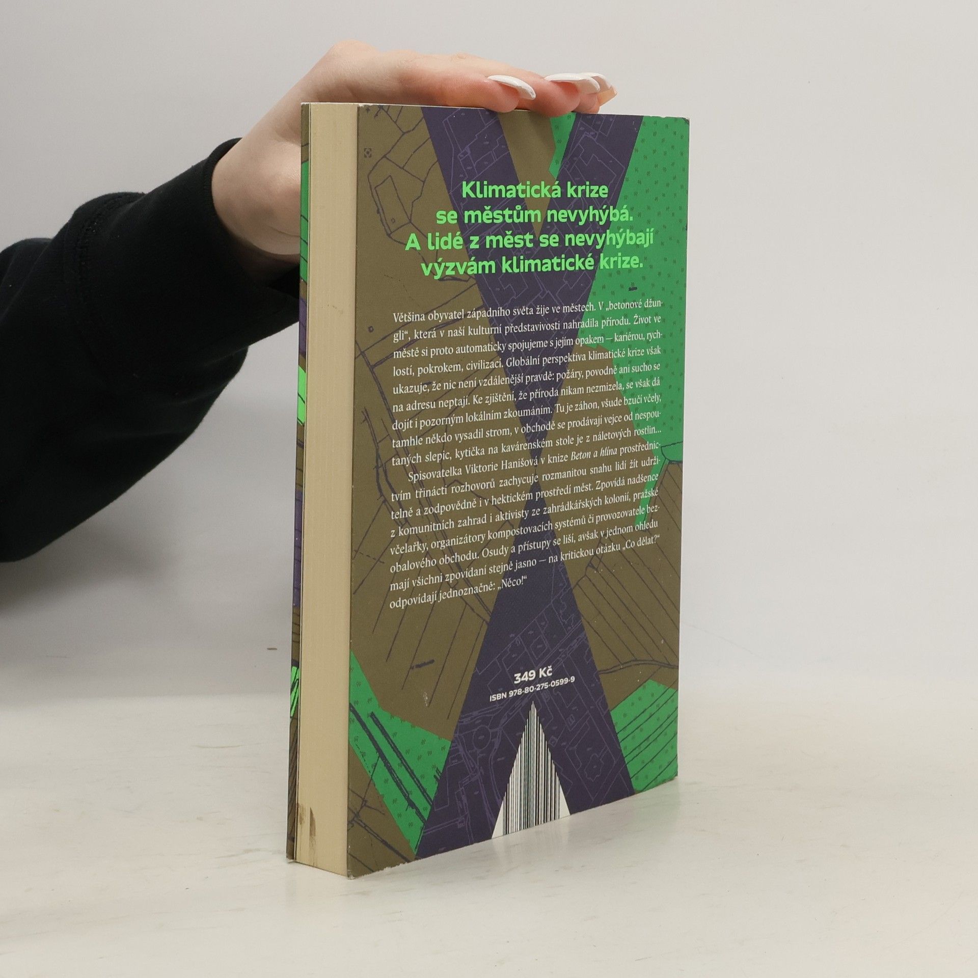 Klimatická krize se městům nevyhýbá. A lidé z měst se nevyhýbají klimatické krizi. Většina obyvatel západního světa žije ve městech. V prostředí, které v naší kulturní představivosti nahradilo přírodu, v „betonové džungli“. Život ve městě si proto automaticky spojujeme s jejím opakem — s kariérou, rychlostí, pokrokem, civilizací. Globální perspektiva klimatické krize však ukazuje, že nic není vzdálenější pravdě: požáry, povodně ani sucho se na adresu neptají. Ke stejnému zjištění se však dá dojít i pozorným lokálním zkoumáním. Tu je záhon, odněkud smrdí kompost, všude bzučí včely, tamhle někdo vysadil strom, v obchodě se prodávají vejce od nespoutaných slepic, kytička na kavárenském stolku je z náletových rostlin… Spisovatelka Viktorie Hanišová v knize Beton a hlína prostřednictvím třinácti rozhovorů zachycuje rozmanitou snahu lidí žít udržitelně a zodpovědně i v hektickém prostředí měst. Zpovídá nadšence z komunitních zahrad i aktivisty ze zahrádkářských kolonií, pražské včelařky, organizátory kompostovacích systémů či provozovatele bezobalového obchodu. Každý osud i přístup se liší, avšak v jednom ohledu mají všichni zpovídaní stejně jasno — na kritickou otázku „Co dělat?“ odpovídají jednoznačně: „Něco!“