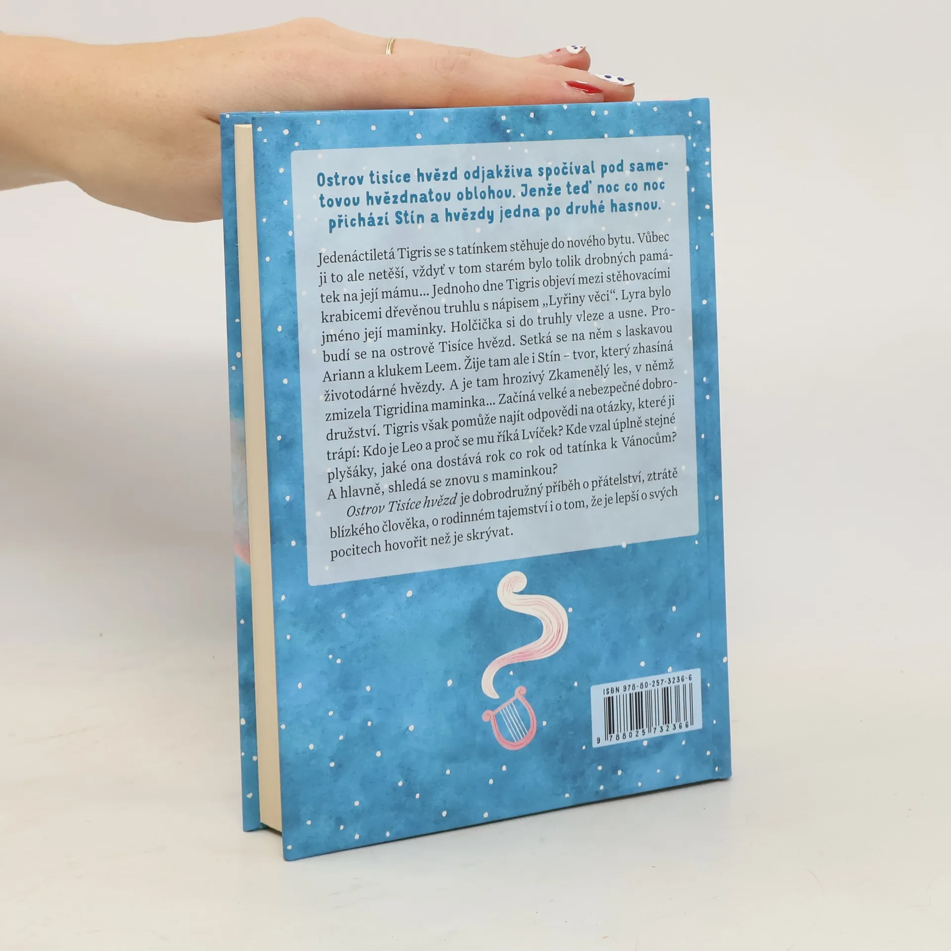 Ostrov Tisíce hvězd odjakživa spočíval pod sametovou hvězdnatou oblohou. Jenže to se začíná měnit. Noc co noc přichází Stín a hvězdy jedna po druhé hasnou. Jedenáctiletá Tigris se s tatínkem stěhuje do nového bytu. Vůbec ji to ale netěší, v tom starém bylo tolik drobných památek na její mámu a ten nový je prostě jen prázdný. Jednoho dne ale Tigris objeví mezi stěhovacími krabicemi dřevěnou truhlu s nápisem „Lyřiny věci“. Lyra bylo jméno její maminky. Holčička si do truhly vleze a usne tam. Když se zase probudí, ocitne se na Ostrově tisíce hvězd. Setká se na něm s Ariann, jejími syny a klukem Leem. Jenže na ostrově žije také Stín – tvor, který zhasíná životodárné hvězdy. A je tam taky hrozivý Zkamenělý les, v němž zmizela Tigridina maminka… Ostrov tisíce hvězd je dobrodružný příběh o přátelství, ztrátě někoho blízkého, o rodinném tajemství, které nakonec vyjde najevo, i o tom, že o pocitech je lépe hovořit než je skrývat. „„Jak nepomyslet při četbě tohoto kouzelného, dojemného dobrodružného příběhu na knihu Astrid Lindgrenové Mio, můj Mio. Hrdinčina touha po matce je prodchnuta vroucností i obavami.“ Vi Läser