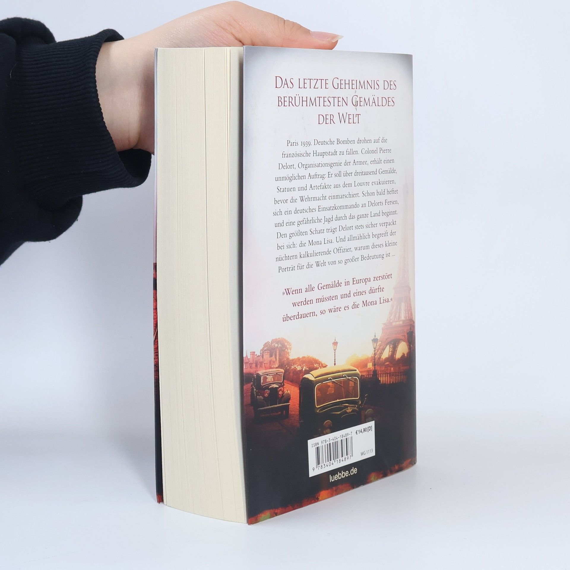 Frankreich 1940. Colonel Pierre Delort, Organisationsgenie der Armee, erhält einen unmöglichen Auftrag: Er soll über dreitausend Gemälde, Statuen und Artefakte aus dem Louvre evakuieren, bevor die Wehrmacht in Paris einmarschiert. Schon bald heftet sich ein deutsches Einsatzkommando an Delorts Fersen, und eine gefährliche Jagd beginnt. Den größten Schatz trägt Delort stets im Handgepäck bei sich: die Mona Lisa. Und allmählich begreift der nüchtern kalkulierende Offizier, warum dieses kleine Porträt für die Welt von so großer Bedeutung ist ...
