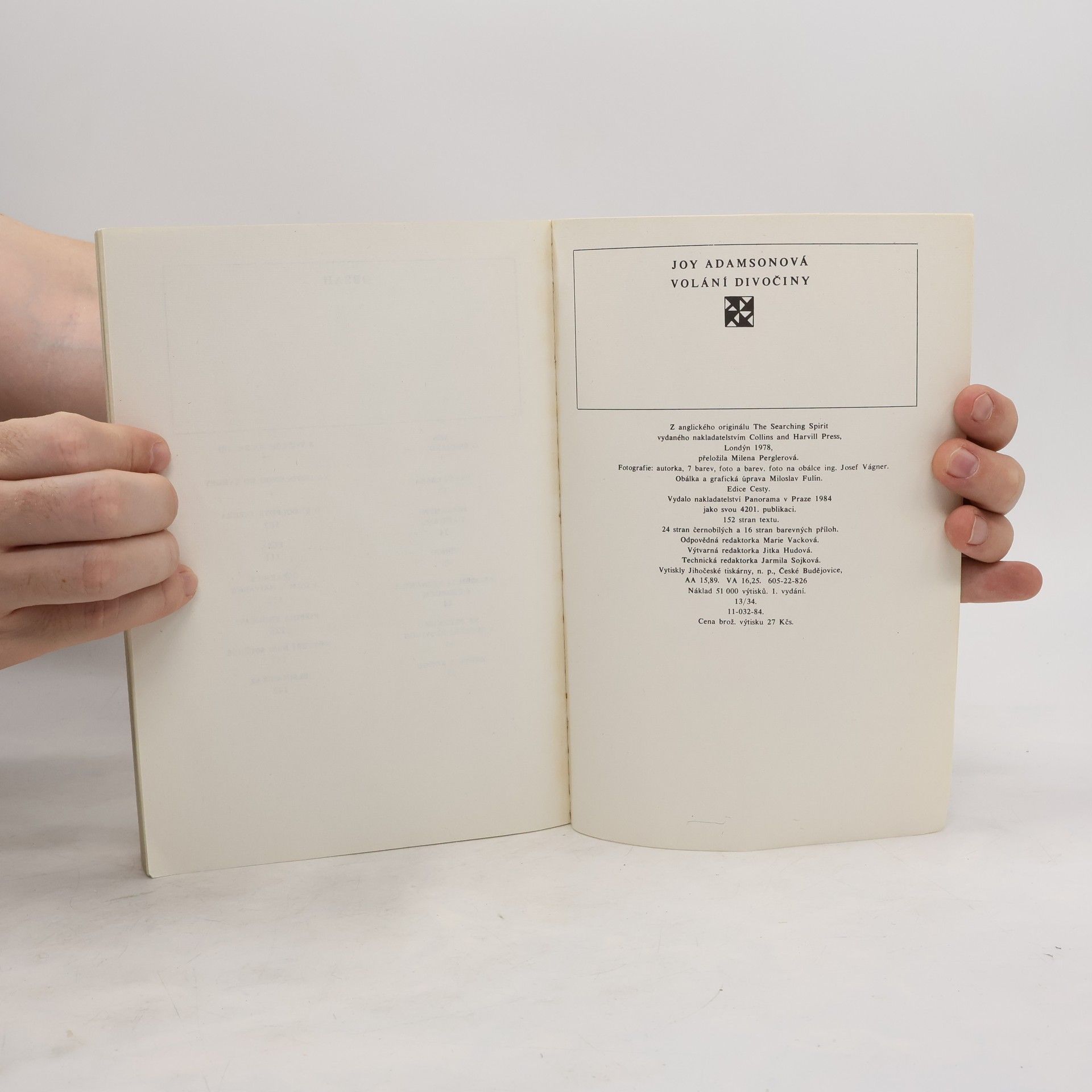 Autobiografie, podle které byl natočen mimořádně úspěšný film. V této knize se Adamsonová zmiňuje i o svém dětství v Opavě. Fotografie: autorka a Josef Vágner