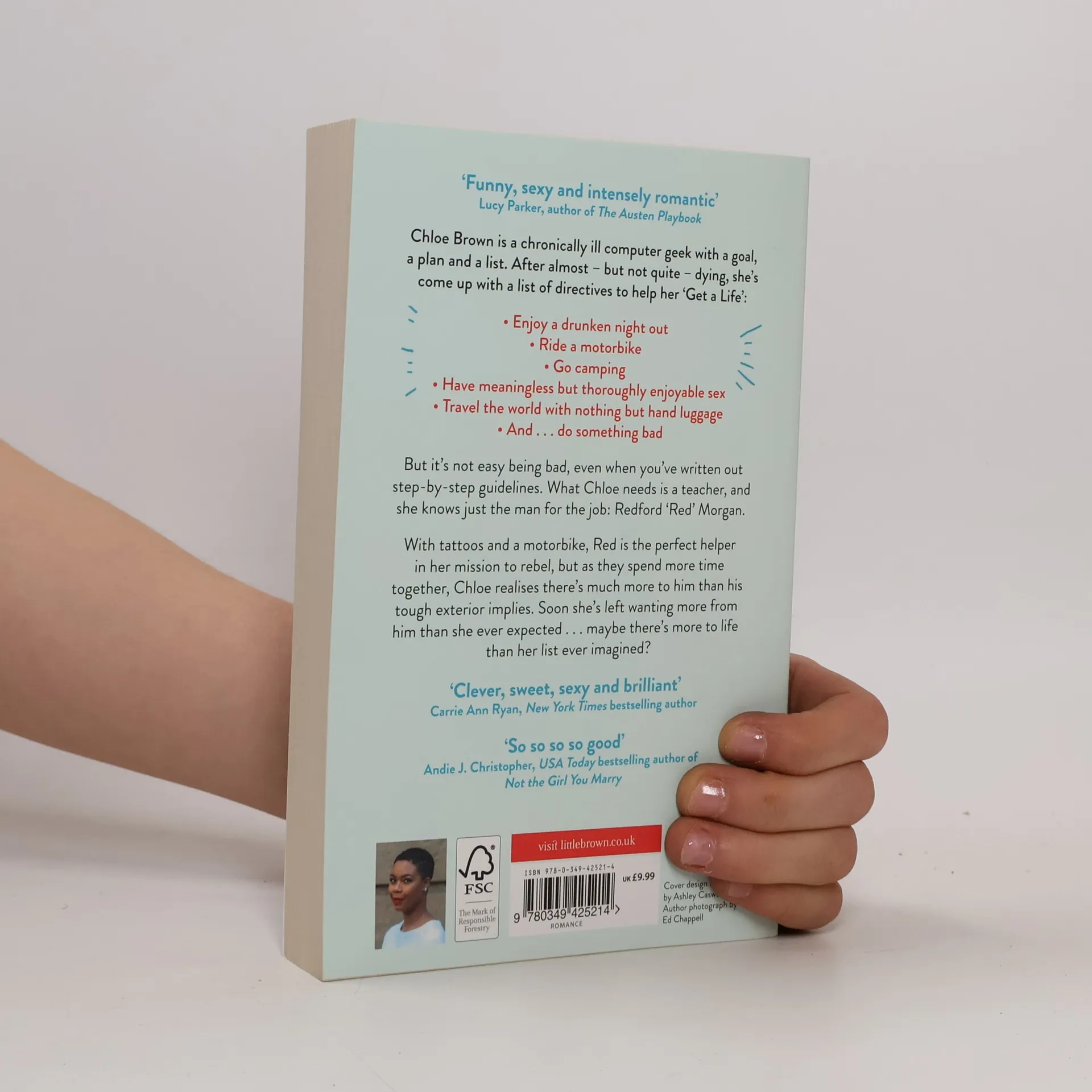 Talia Hibbert delivers a witty, hilarious romantic comedy about a woman eager to escape her 'boring' life by enlisting her mysterious, sexy neighbor for help. Chloe Brown, a chronically ill computer geek, creates a list of directives to 'Get a Life' after a near-death experience. Her goals include enjoying a drunken night out, riding a motorbike, camping, having casual but fun sex, traveling light, and doing something bad. However, following her list proves challenging, and she realizes she needs a teacher—Redford 'Red' Morgan, her tattooed neighbor with a motorbike. As they spend time together, Chloe discovers that Red has more depth than his tough exterior suggests, leading her to want more than she initially anticipated. Praise for the story highlights its humor, romance, and emotional depth, making it a delightful read for fans of contemporary romance. Reviewers describe it as funny, sexy, and intensely romantic, with clever and sweet elements that resonate with readers. The book is celebrated for its heartwarming narrative and engaging characters, making it a must-read for those who enjoy stories filled with warmth and humor.